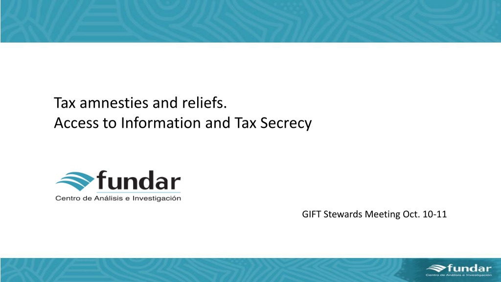 Explore the complexities of tax amnesties, reliefs, and secrecy in fiscal systems as discussed during the GIFT Stewards Meeting. Delve into the beneficiaries, challenges, and implications of these programs, shedding light on issues of transparency and inequality in tax matters.