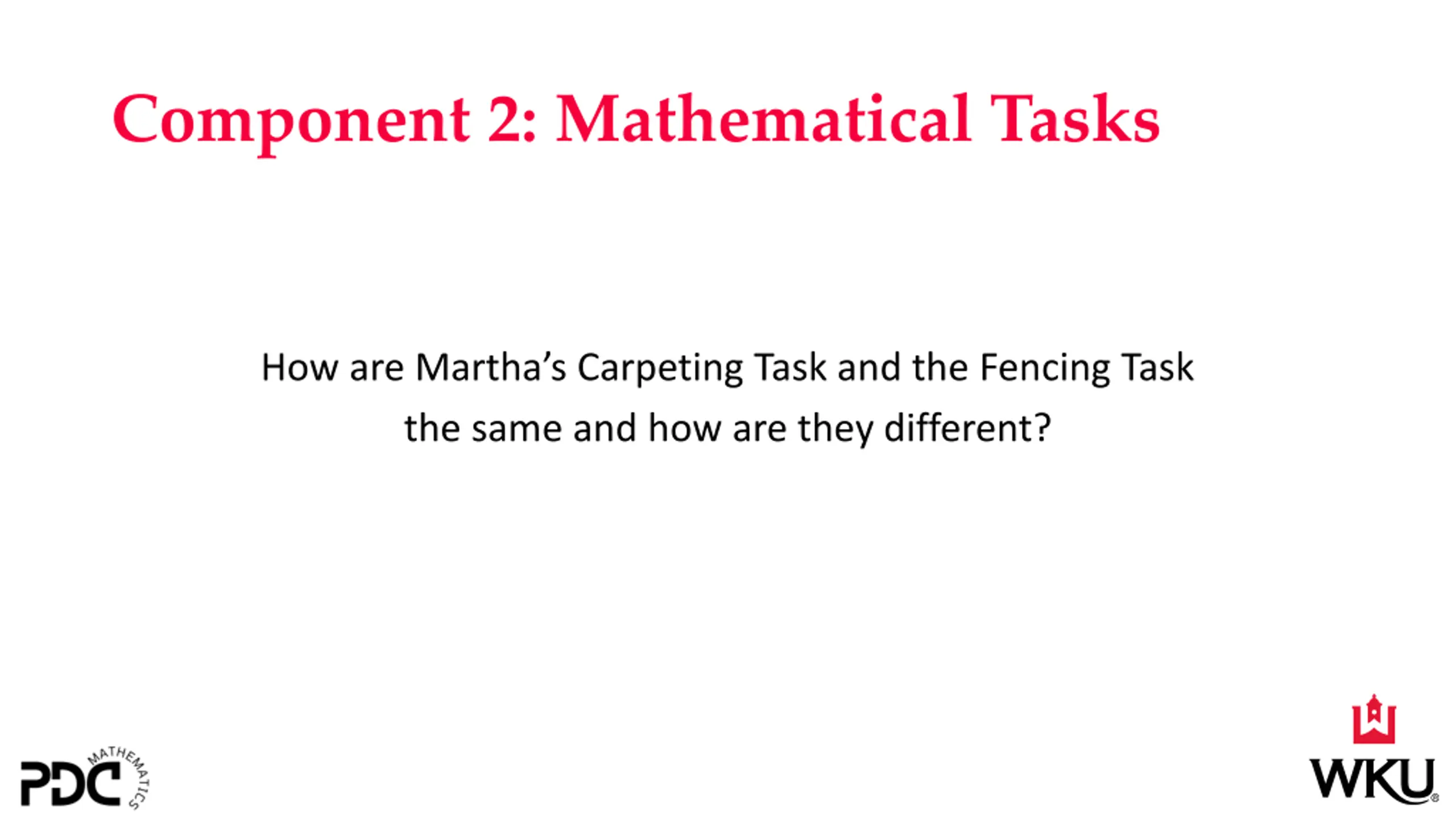 Component 2: Mathematical Tasks How are Martha s Carpeting Task and the Fencing Task the same and how are they different?