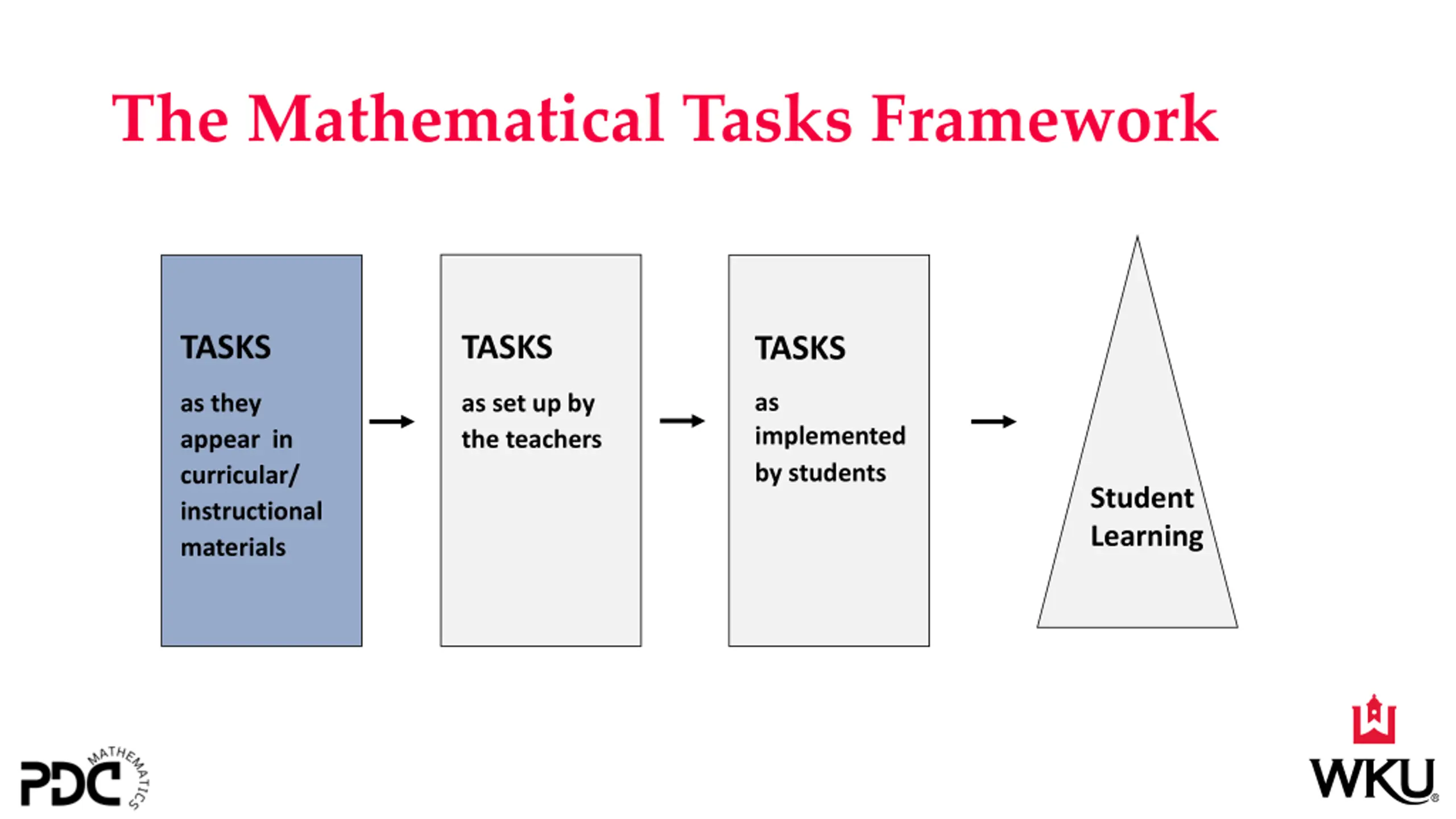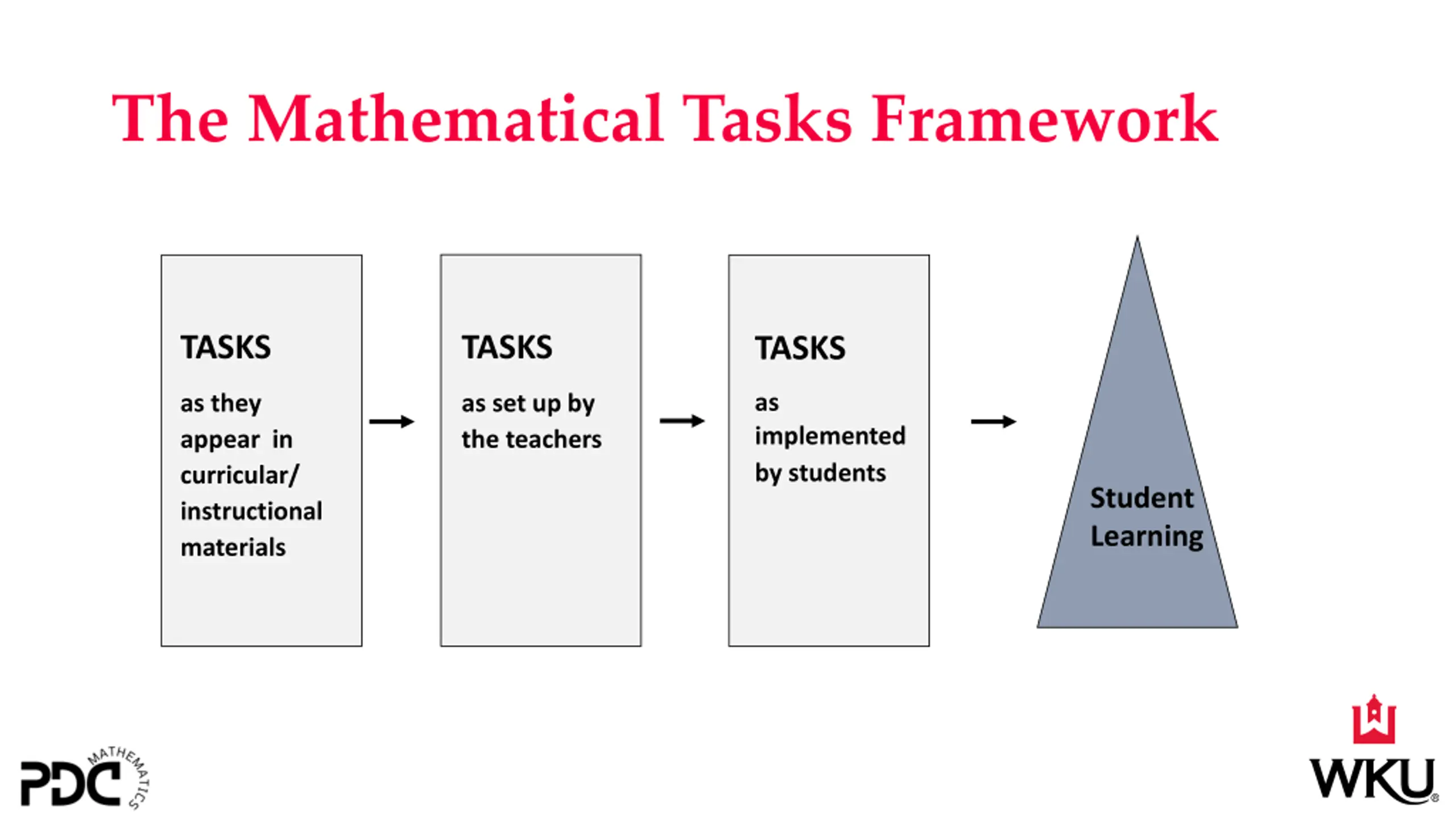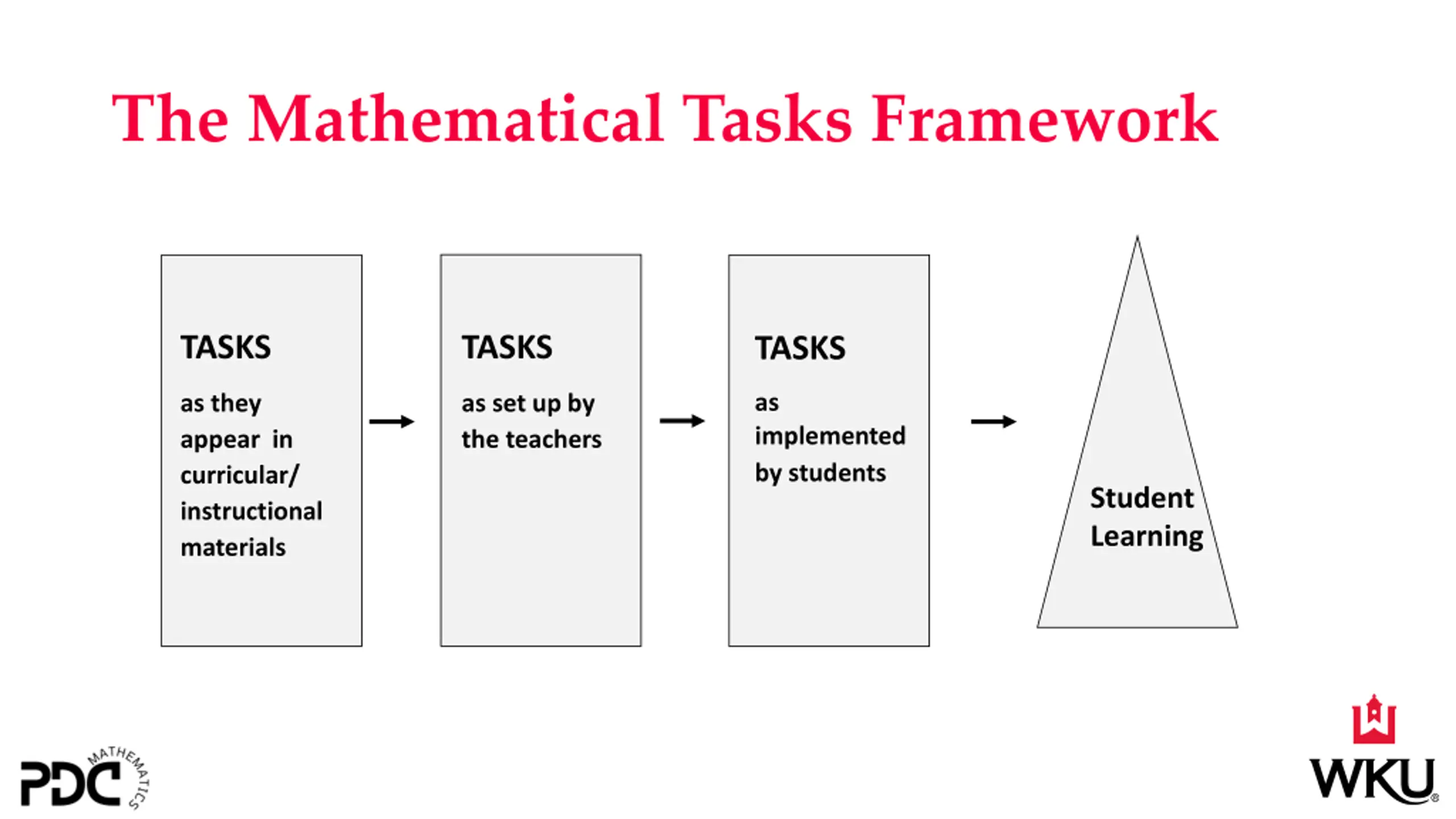 The Mathematical Tasks Framework TASKS TASKS TASKS as implemented by students as they appear in curricular/ instructional materials as set up by the teachers Student Learning