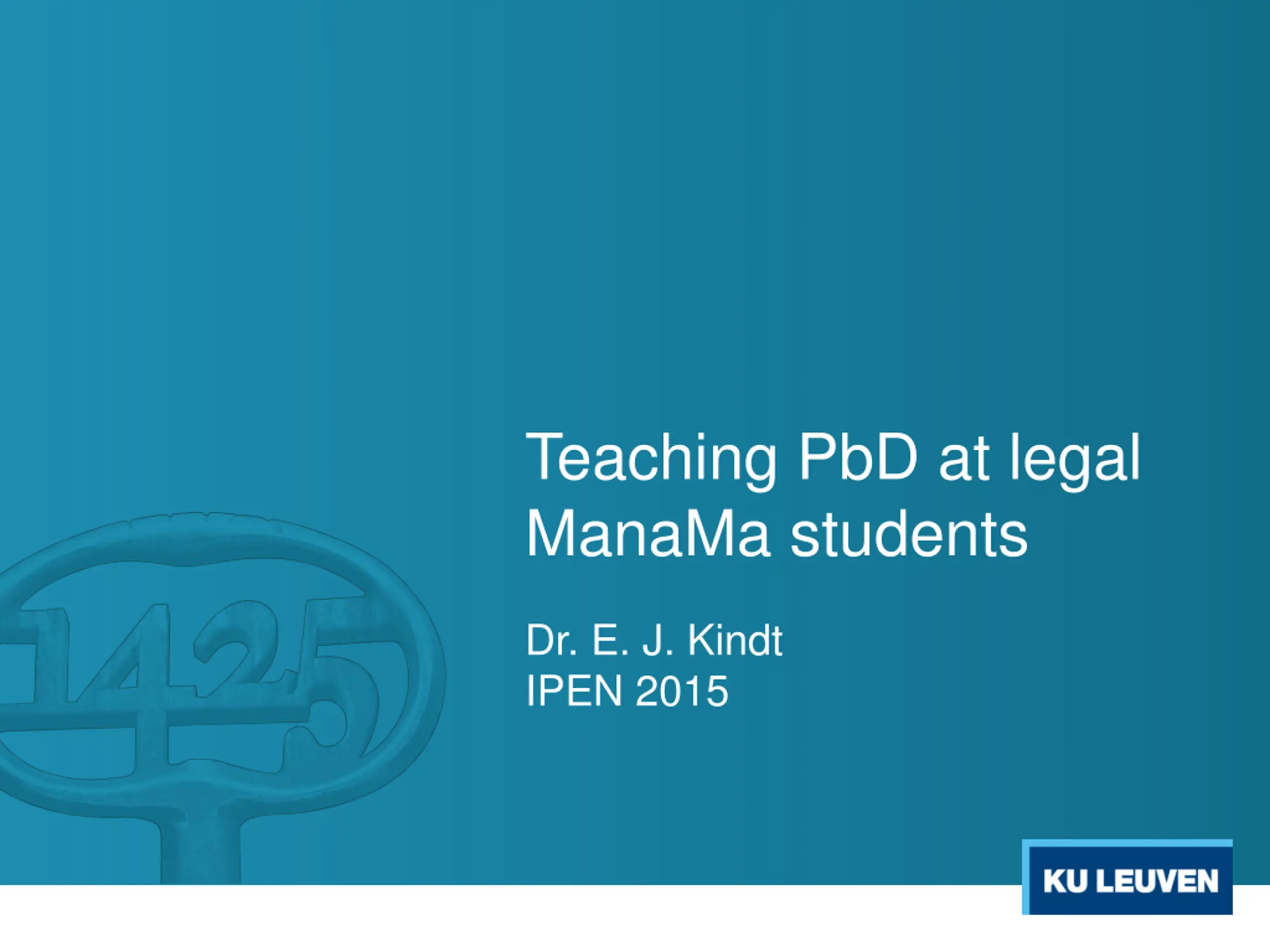 Teaching PbD at legal ManaMa students Dr. E. J. Kindt IPEN 2015