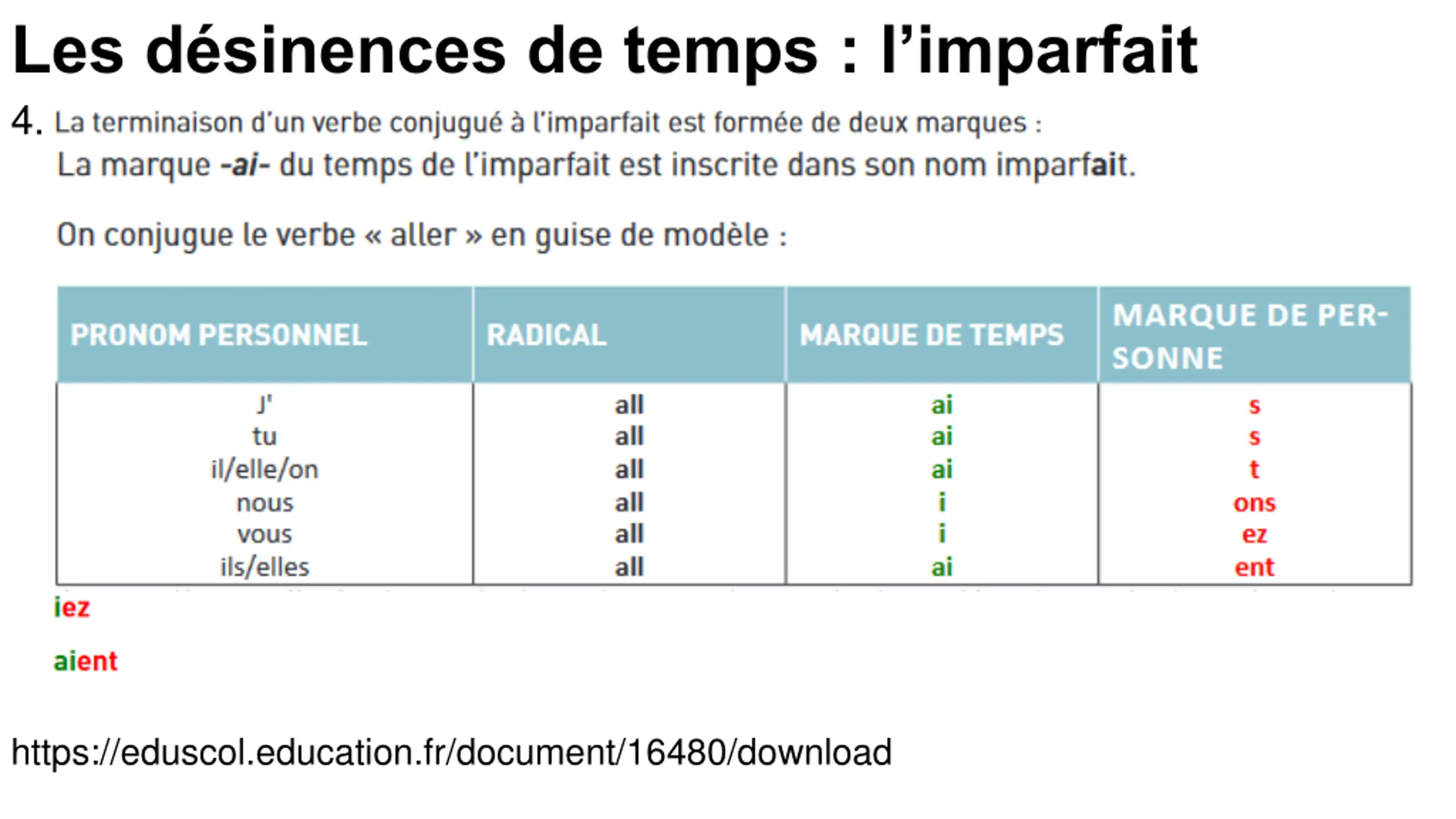 Les dsinences de temps : limparfait 4. La trace crite https://eduscol.education.fr/document/16480/download