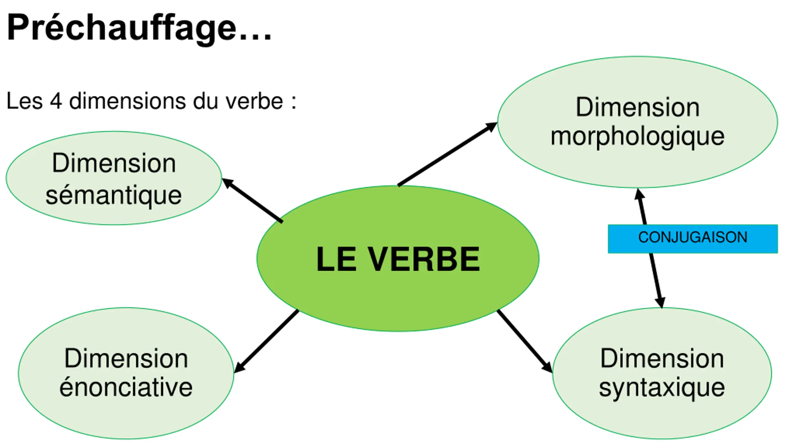 Prchauffage Les 4 dimensions du verbe : Dimension morphologique Dimension s mantique CONJUGAISON LE VERBE Dimension nonciative Dimension syntaxique