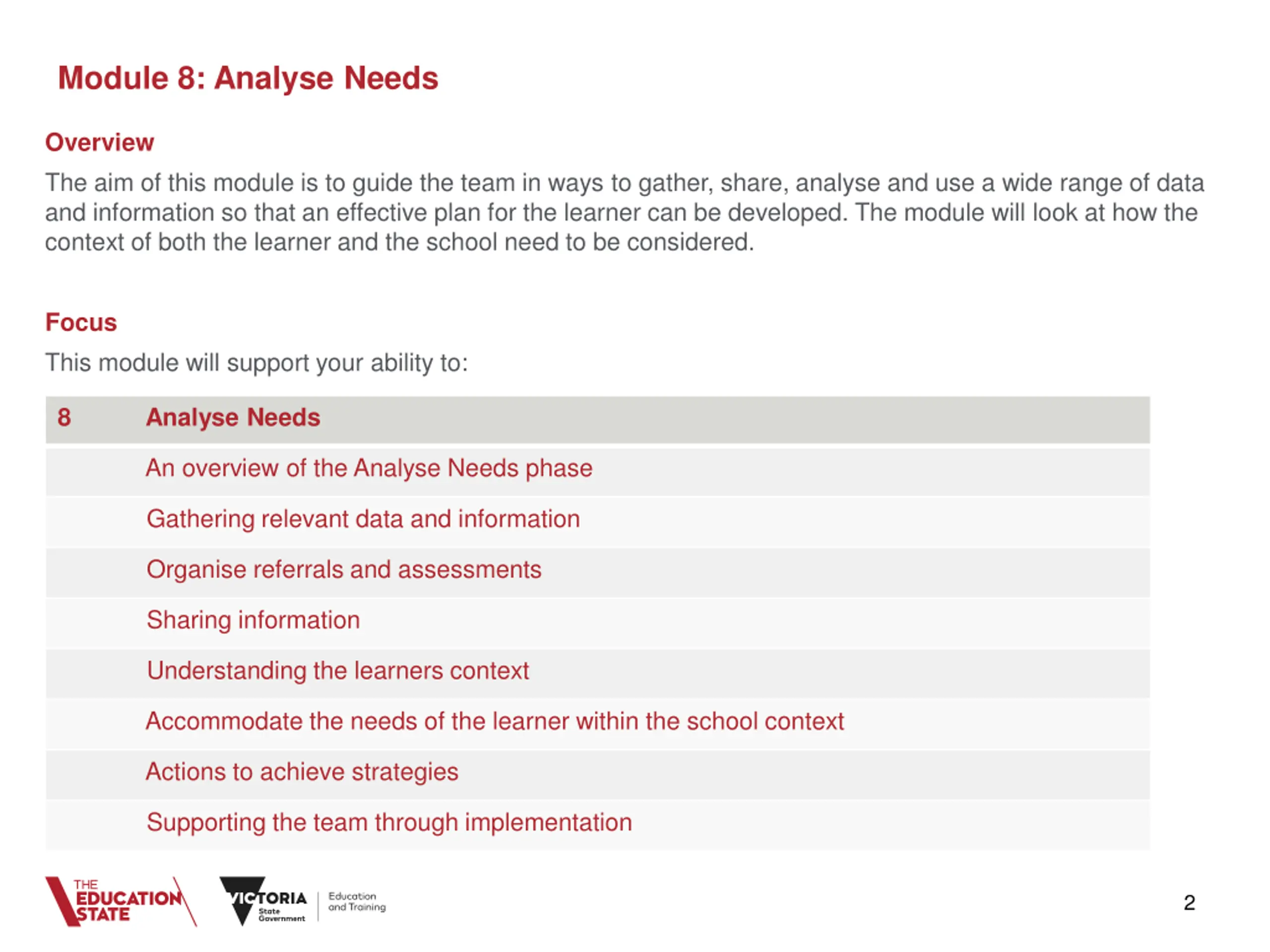 Implementing the Team Around the Learner approach Module 8 Analyse Needs 1