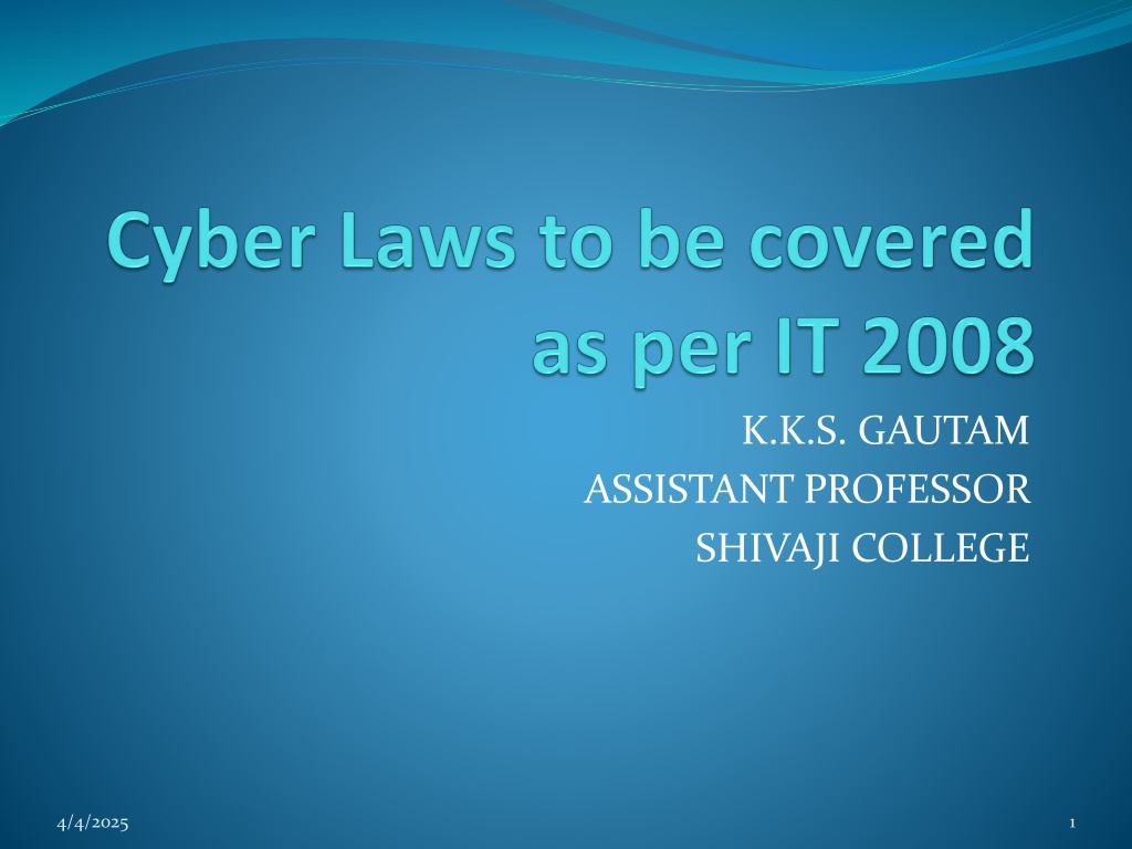 K.K.S. GAUTAM ASSISTANT PROFESSOR SHIVAJI COLLEGE 4/4/2025 1