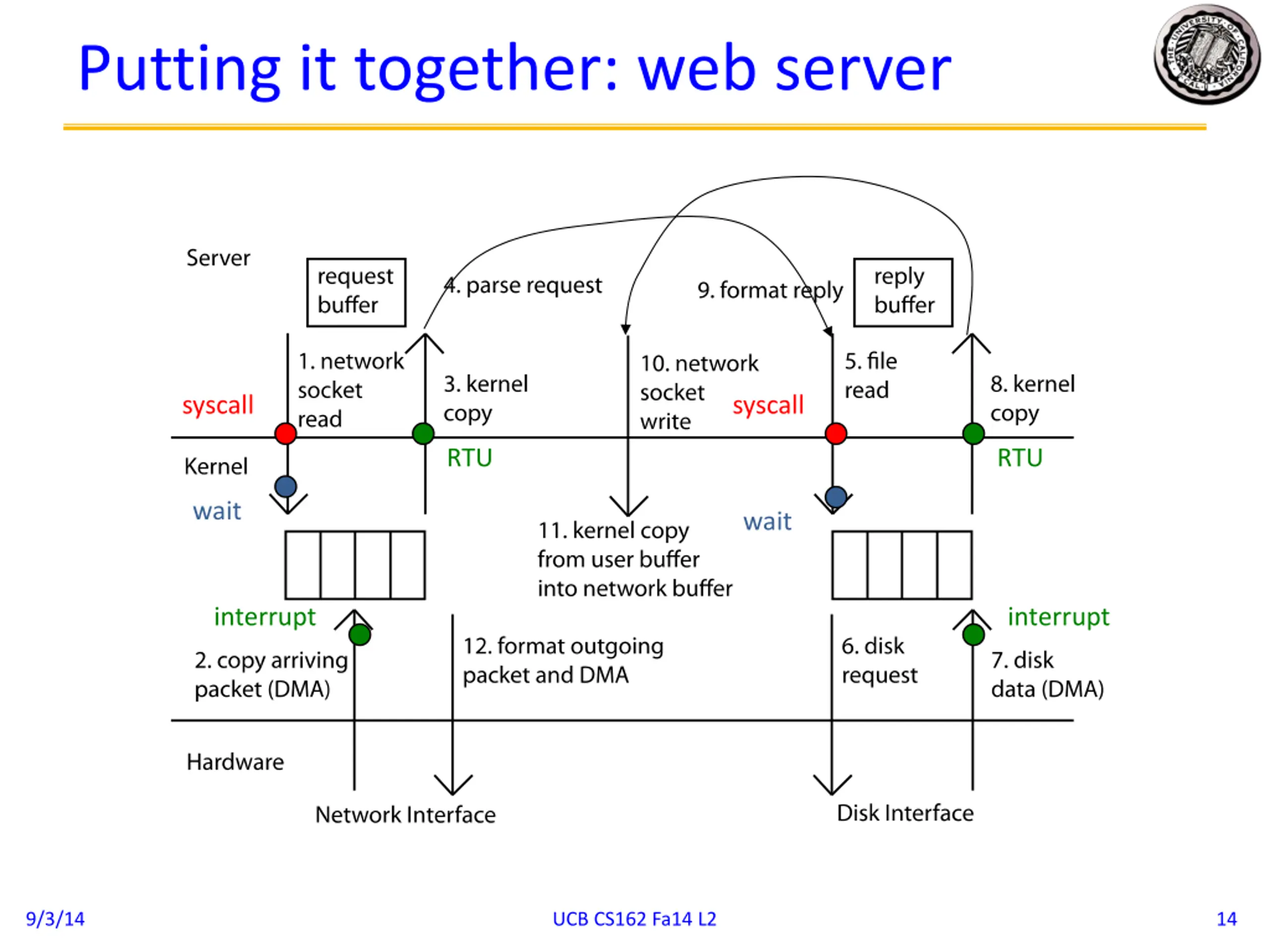 Putting it together: web server syscall syscall RTU RTU wait wait interrupt interrupt 9/3/14 UCB CS162 Fa14 L2 14