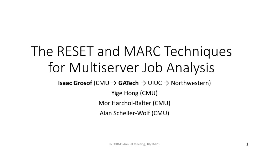 The RESET and MARC Techniques for Multiserver Job Analysis Isaac Grosof (CMU GATech UIUC Northwestern) Yige Hong (CMU) Mor Harchol-Balter (CMU) Alan Scheller-Wolf (CMU) 1 INFORMS Annual Meeting, 10/16/23