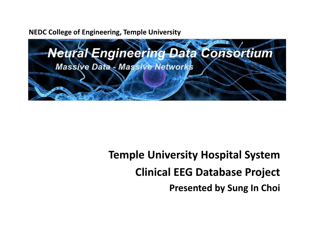 NEDC College of Engineering, Temple University Temple University Hospital System Clinical EEG Database Project Presented by Sung In Choi