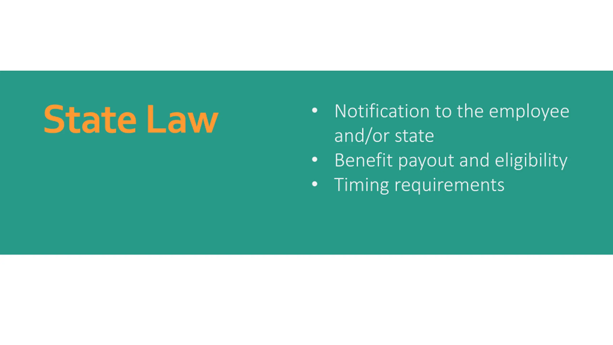 Notification to the employee and/or state Benefit payout and eligibility Timing requirements State Law
