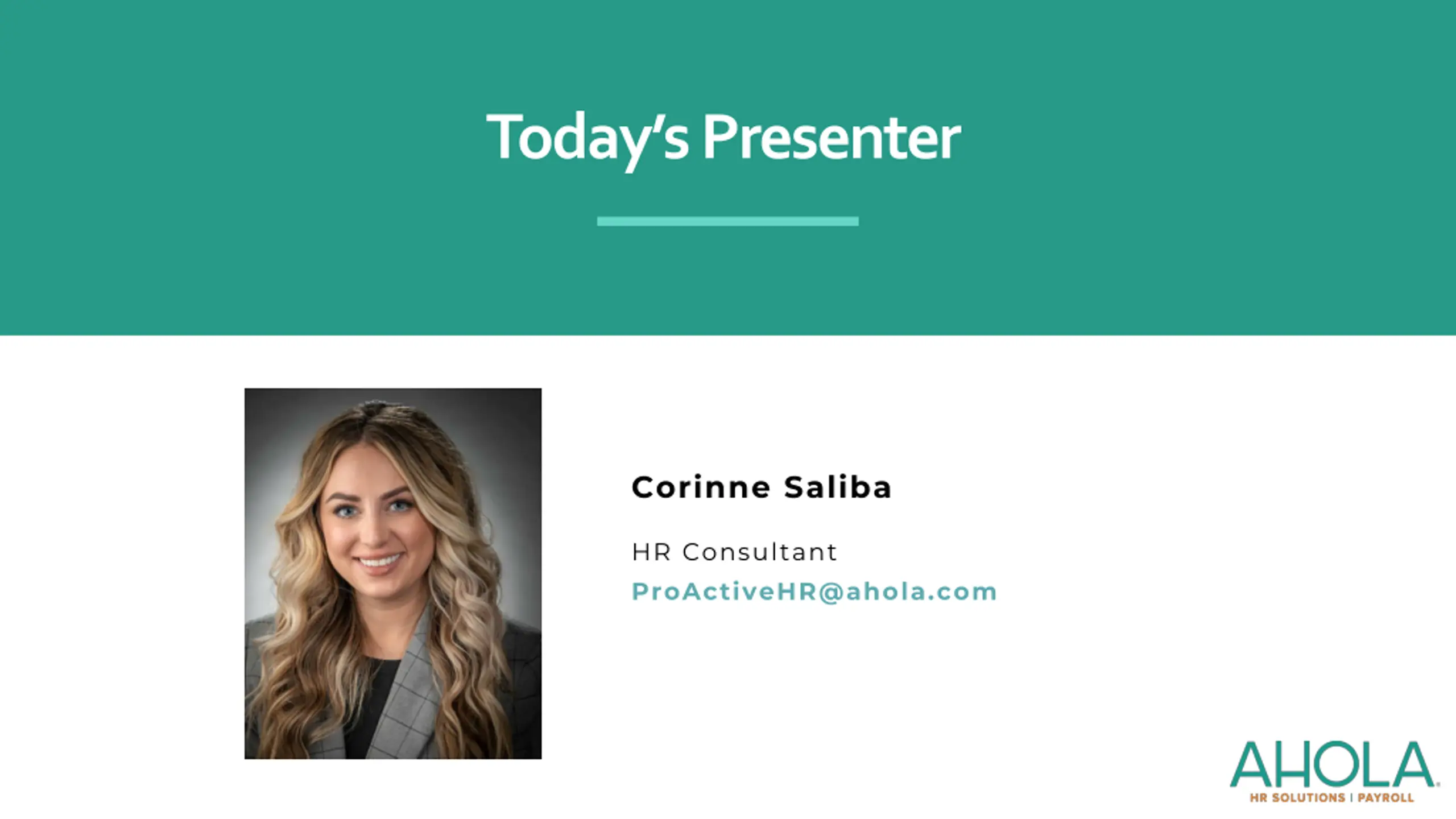 Todays Presenter Corinne Saliba HR Consultant ProActiveHR@ahola.com