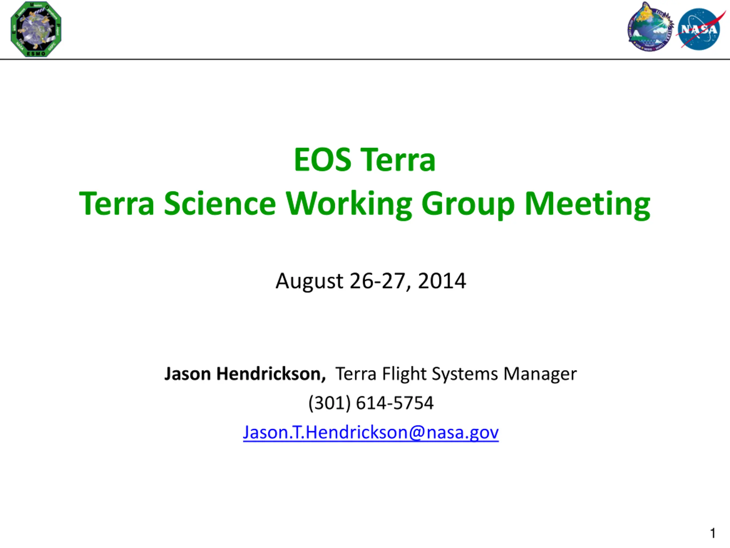 EOS Terra Terra Science Working Group Meeting August 26-27, 2014 Jason Hendrickson, Terra Flight Systems Manager (301) 614-5754 Jason.T.Hendrickson@nasa.gov 1