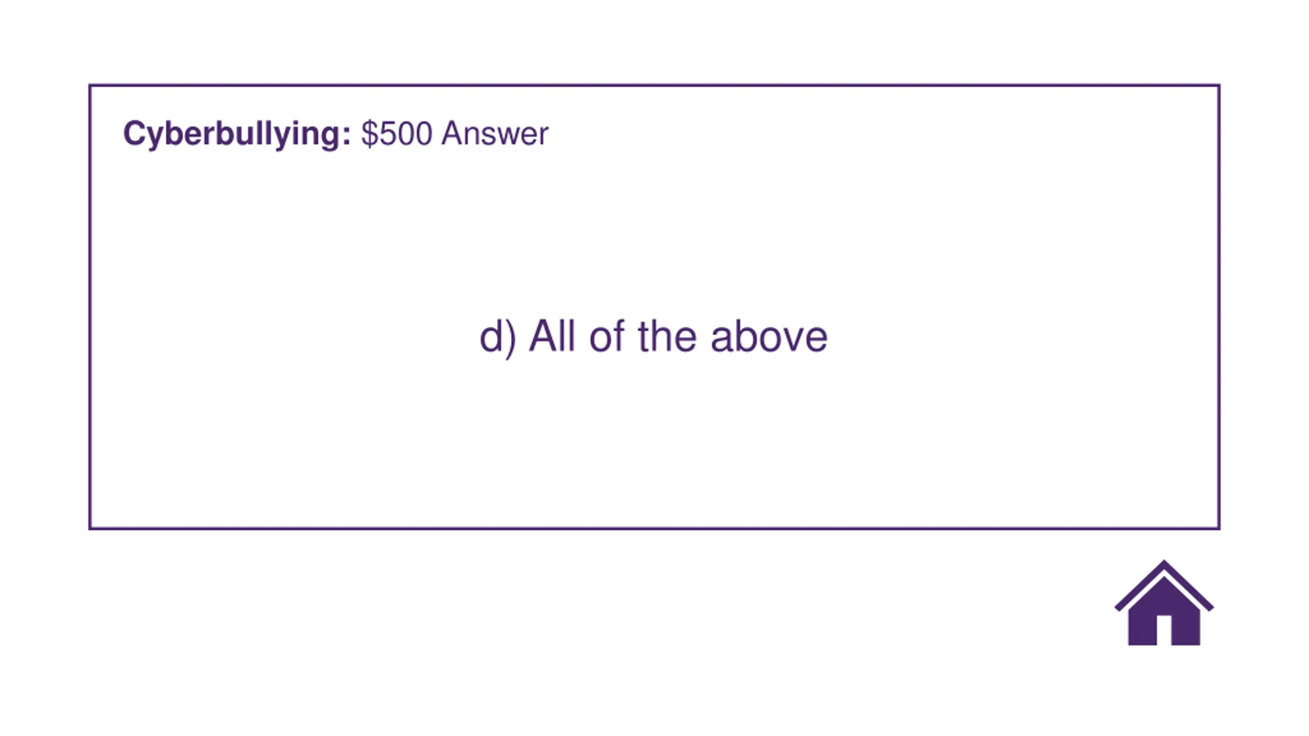 Cyberbullying: $500 Answer d) All of the above Home with solid fill