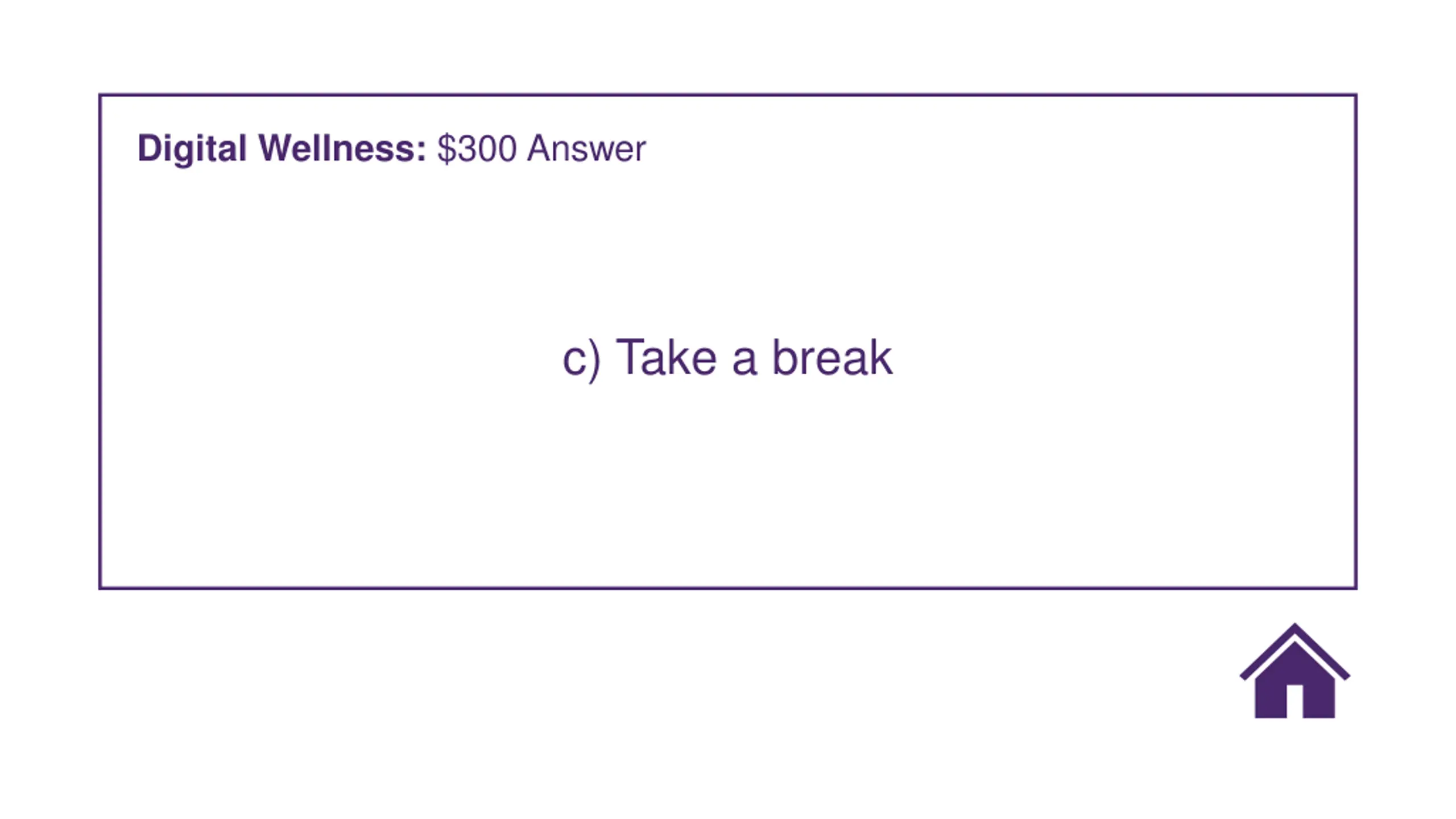 Digital Wellness: $300 Answer c) Take a break Home with solid fill