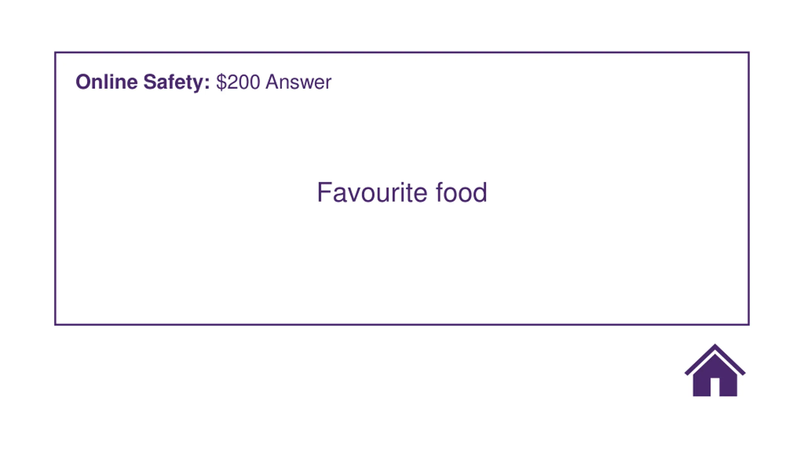 Online Safety: $200 Answer Favourite food Home with solid fill