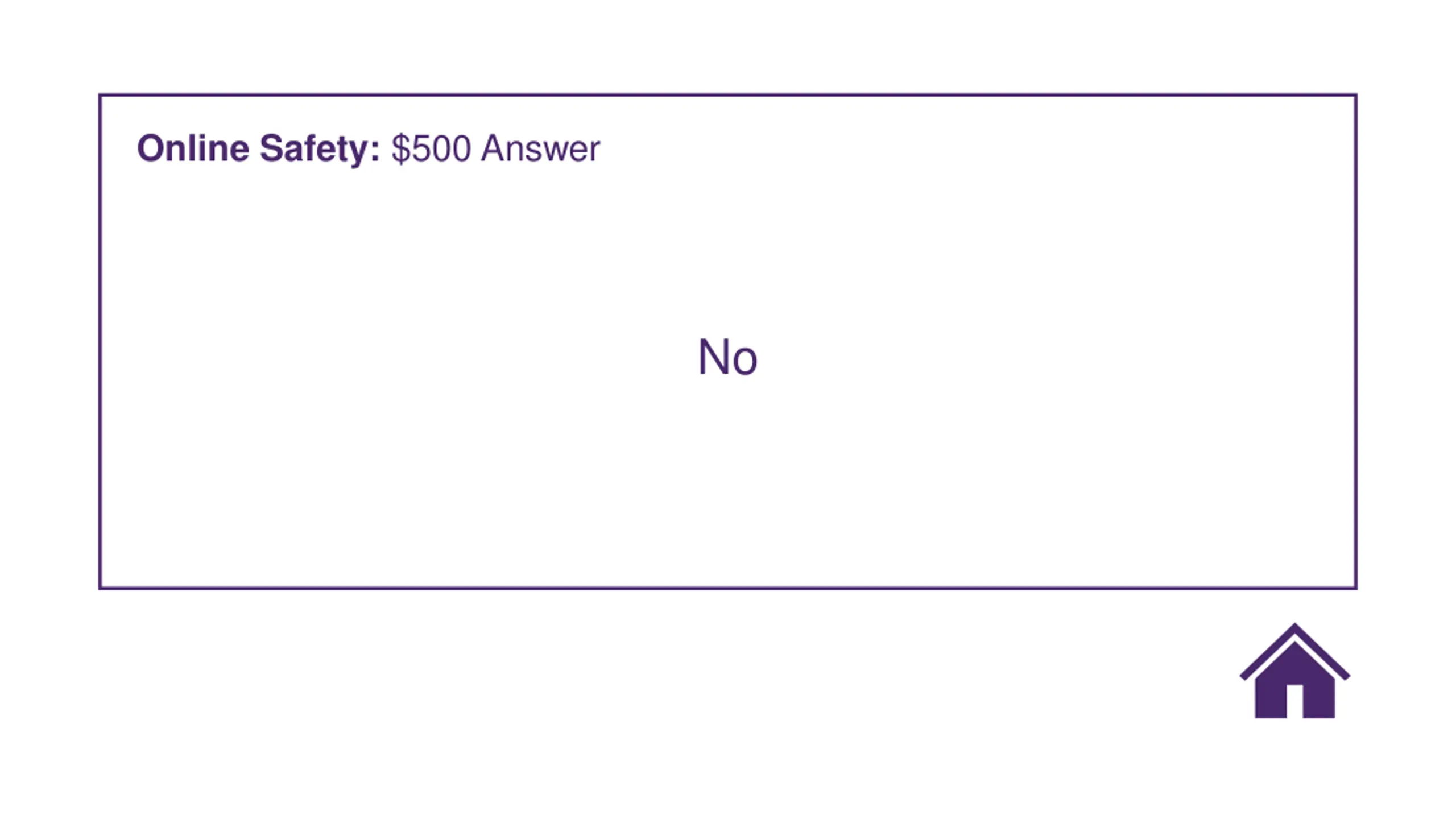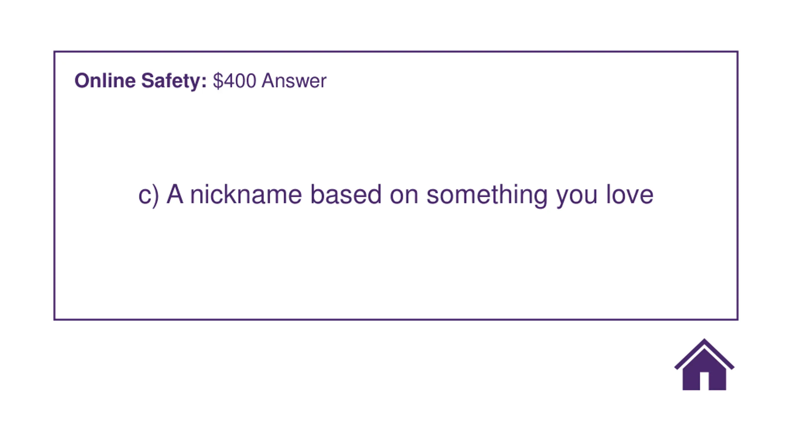 Online Safety: $400 Answer c) A nickname based on something you love Home with solid fill