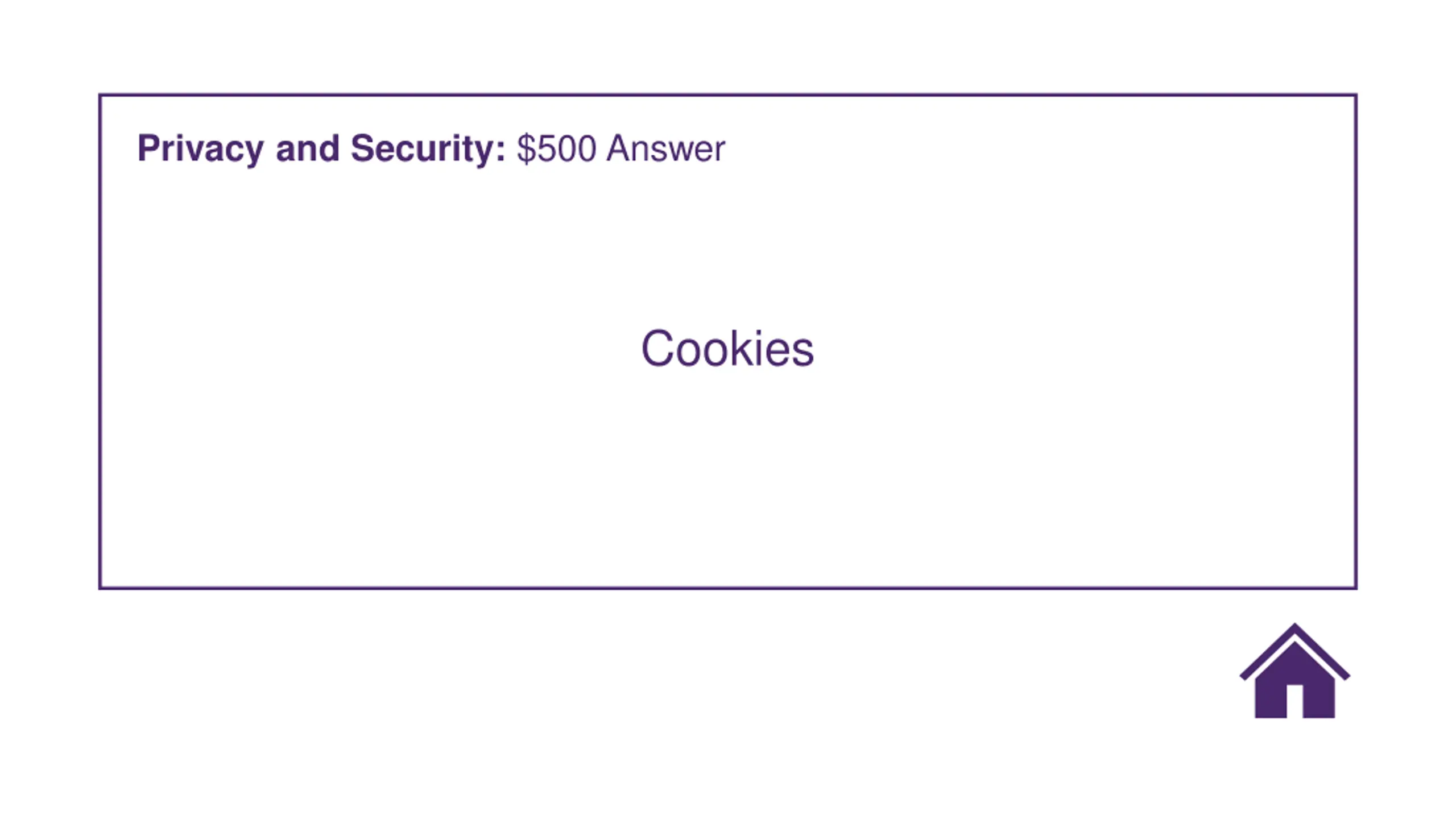 Privacy and Security: $500 Question What is the term for the data that tracks your activity on a website? Answer Answer