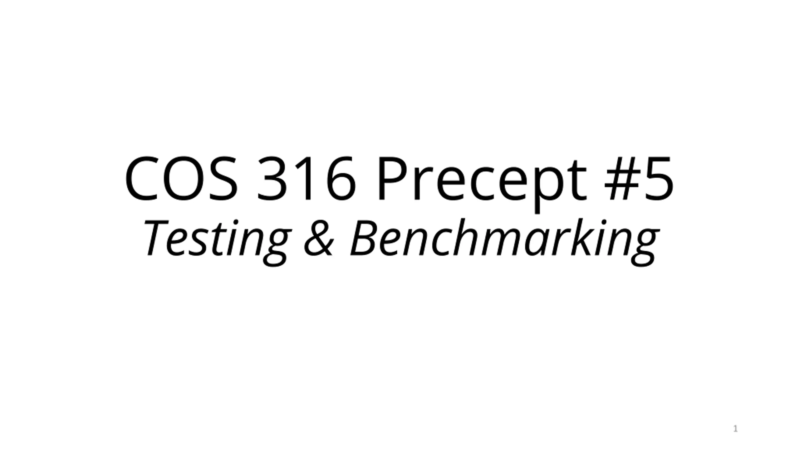 COS 316 Precept #5 Testing & Benchmarking 1