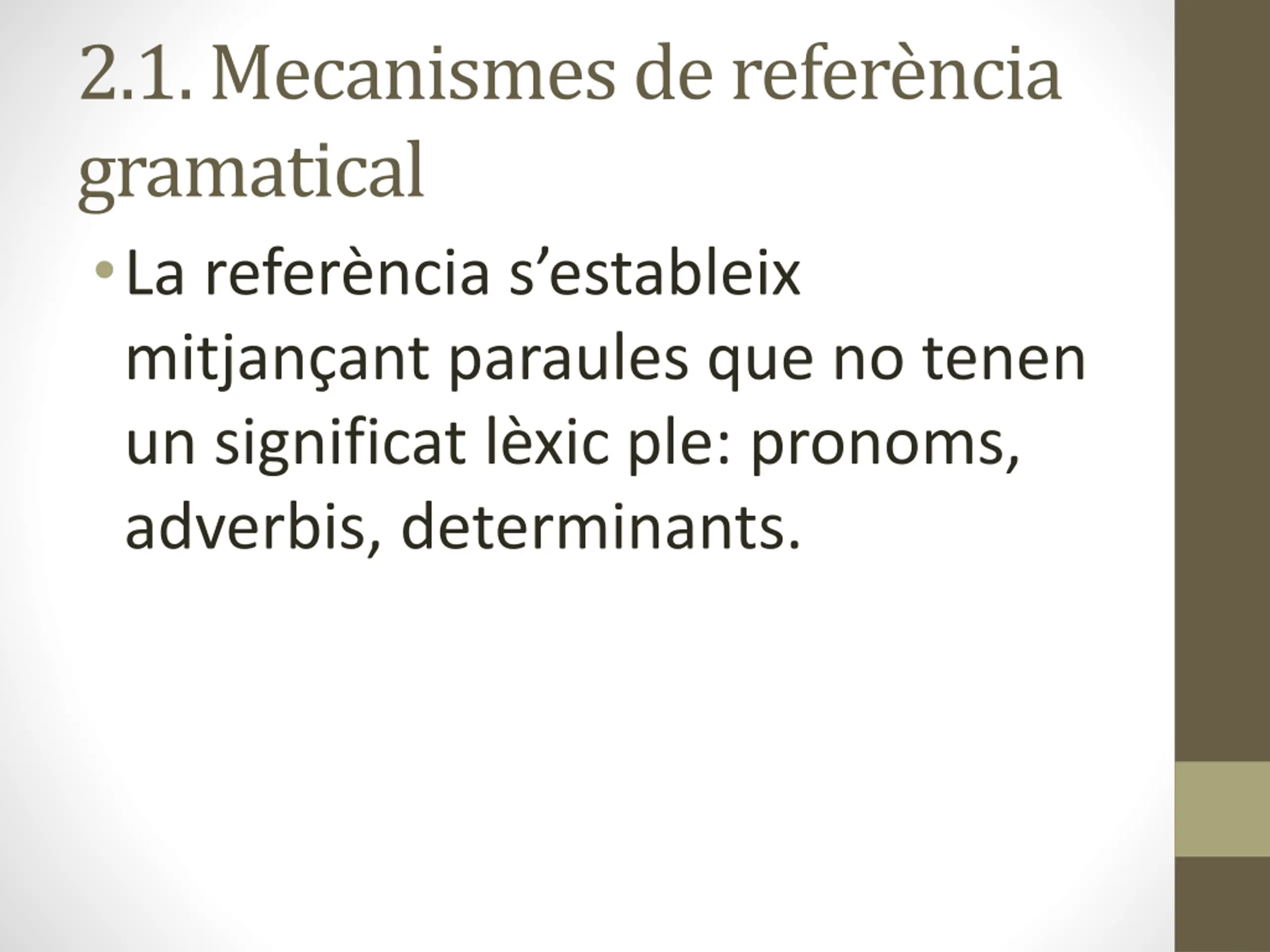 2.1. Mecanismes de referncia gramatical La refer ncia s estableix mitjan ant paraules que no tenen un significat l xic ple: pronoms, adverbis, determinants.