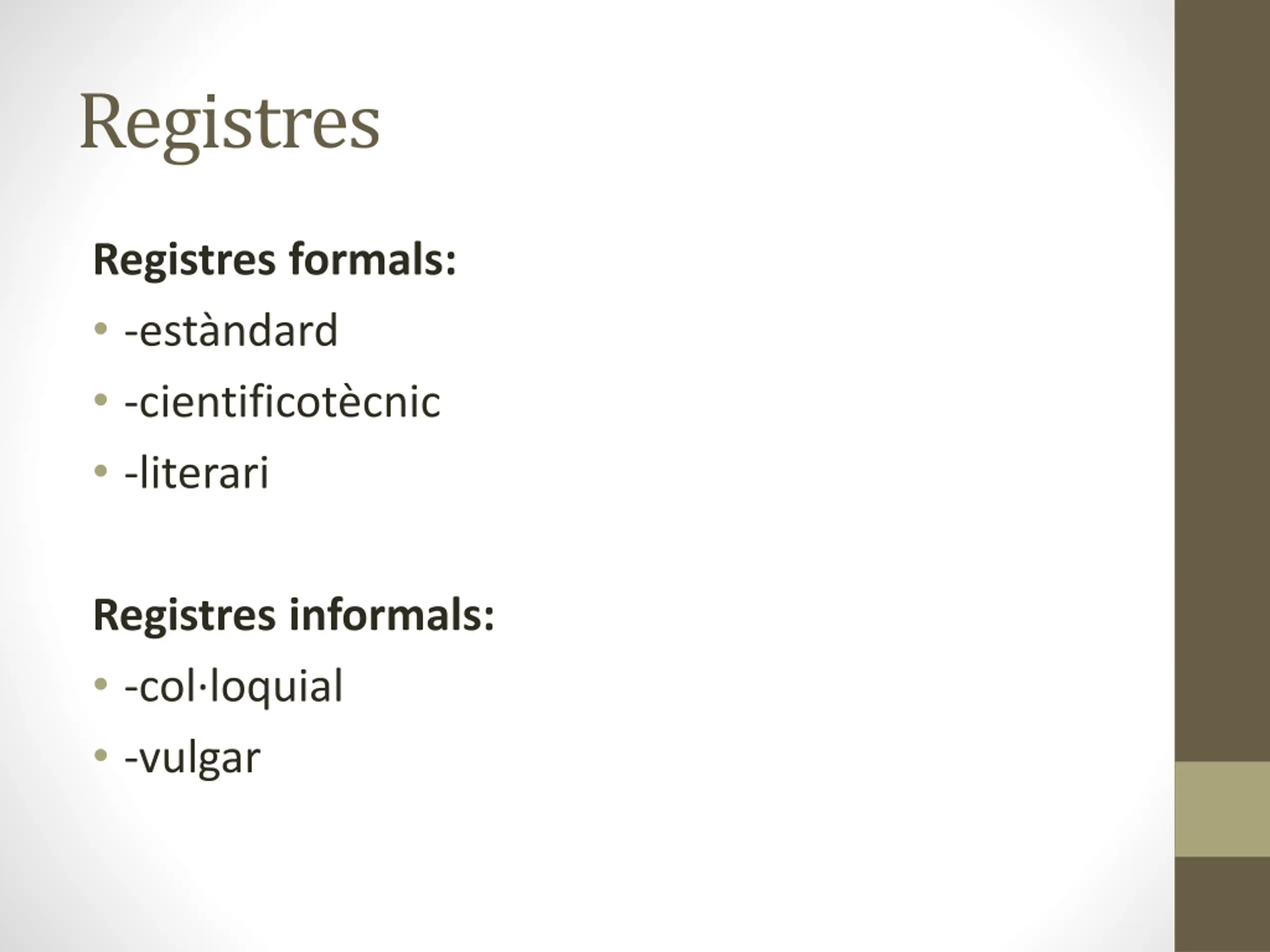 Registres Registres formals: -est ndard -cientificot cnic -literari Registres informals: -col loquial -vulgar