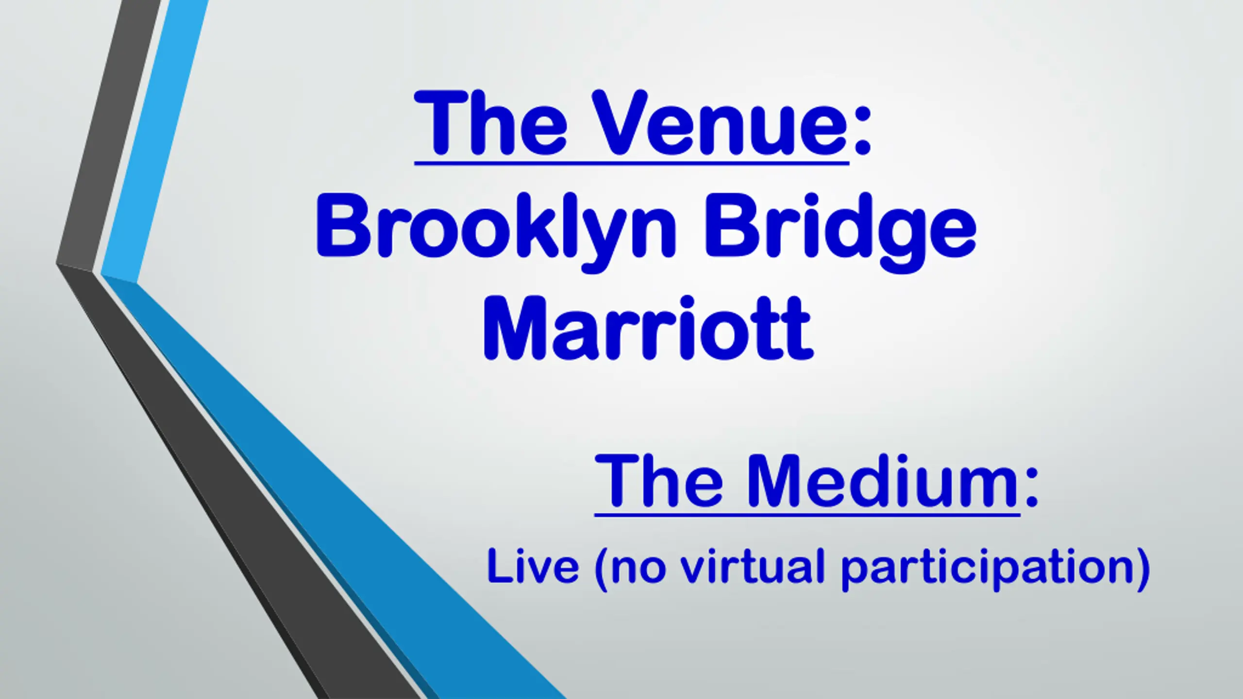The Venue The Venue: : Brooklyn Bridge Brooklyn Bridge Marriott Marriott The Medium: Live (no virtual participation)