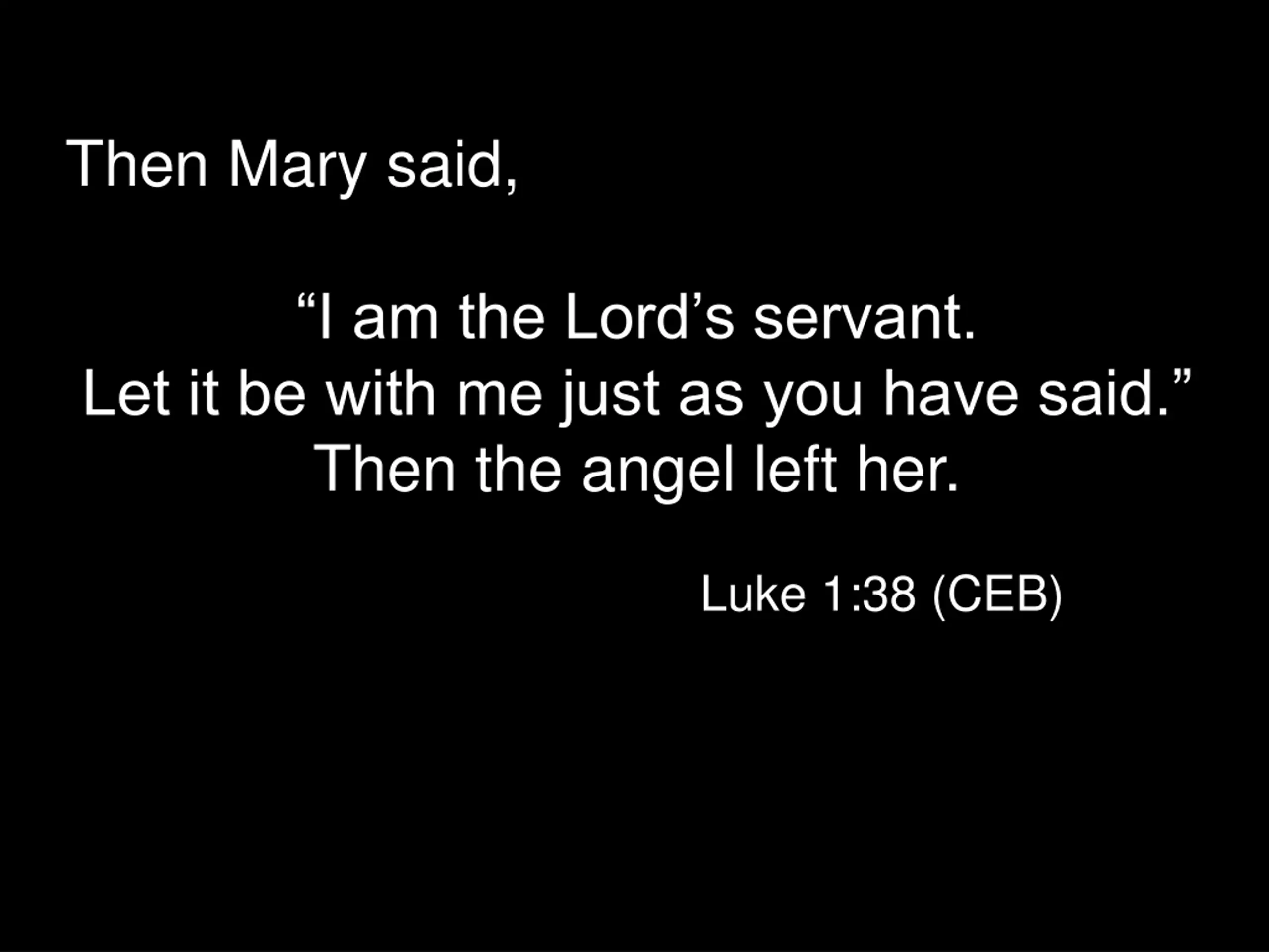 Then Mary said, I am the Lord s servant. Let it be with me just as you have said. Then the angel left her. Luke 1:38 (CEB)