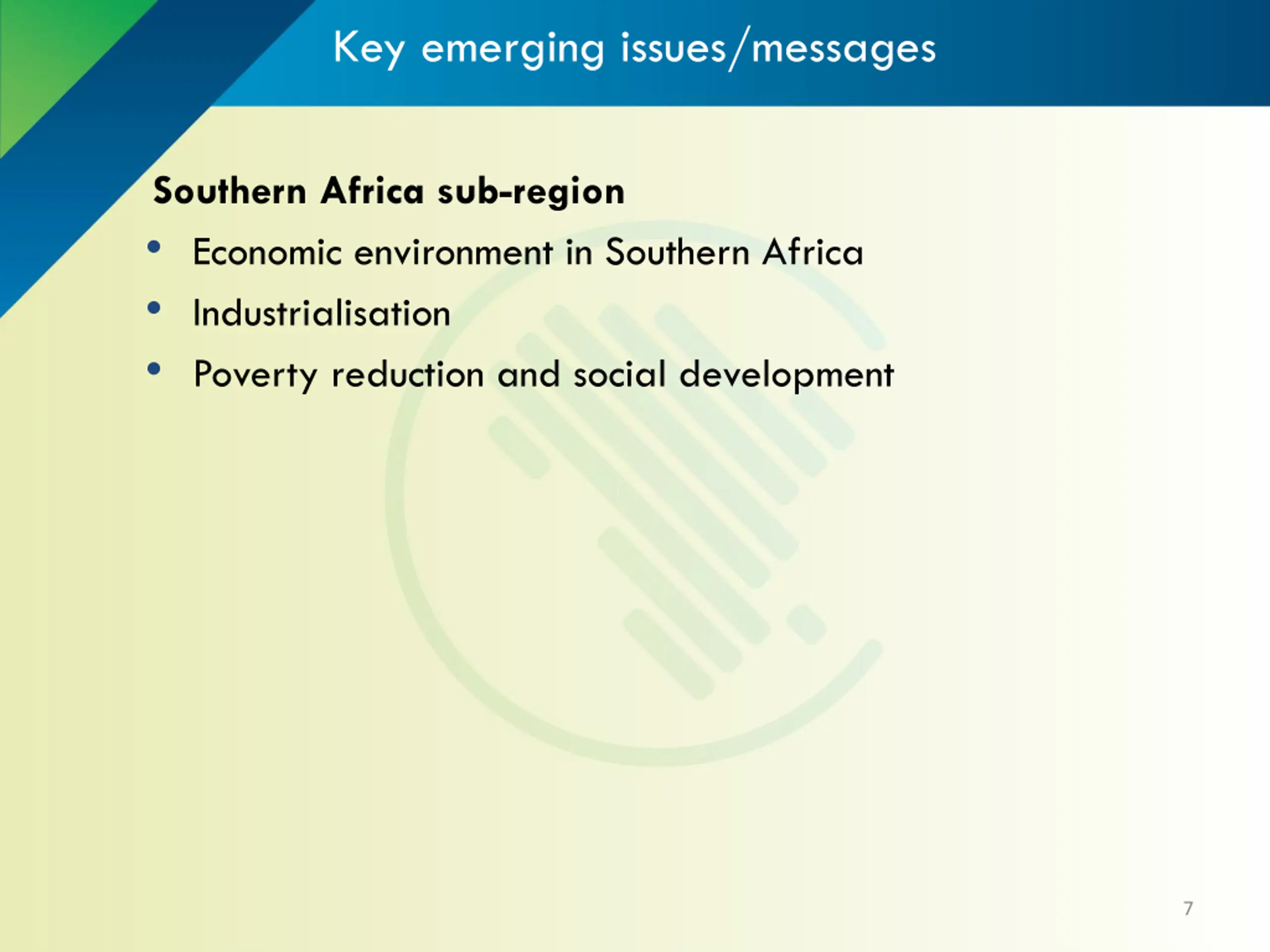 Key emerging issues/messages Southern Africa sub-region Economic environment in Southern Africa Industrialisation Poverty reduction and social development 7
