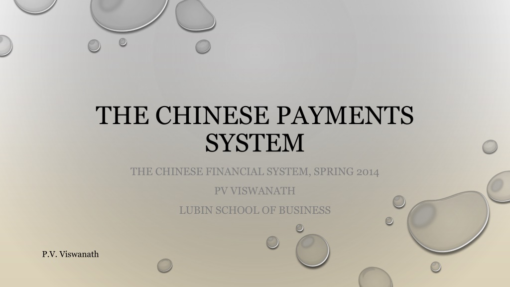 THE CHINESE PAYMENTS SYSTEM THE CHINESE FINANCIAL SYSTEM, SPRING 2014 PV VISWANATH LUBIN SCHOOL OF BUSINESS P.V. Viswanath