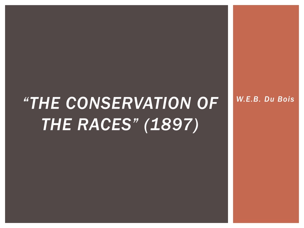 THE CONSERVATION OF THE RACES (1897) W.E.B. Du Bois