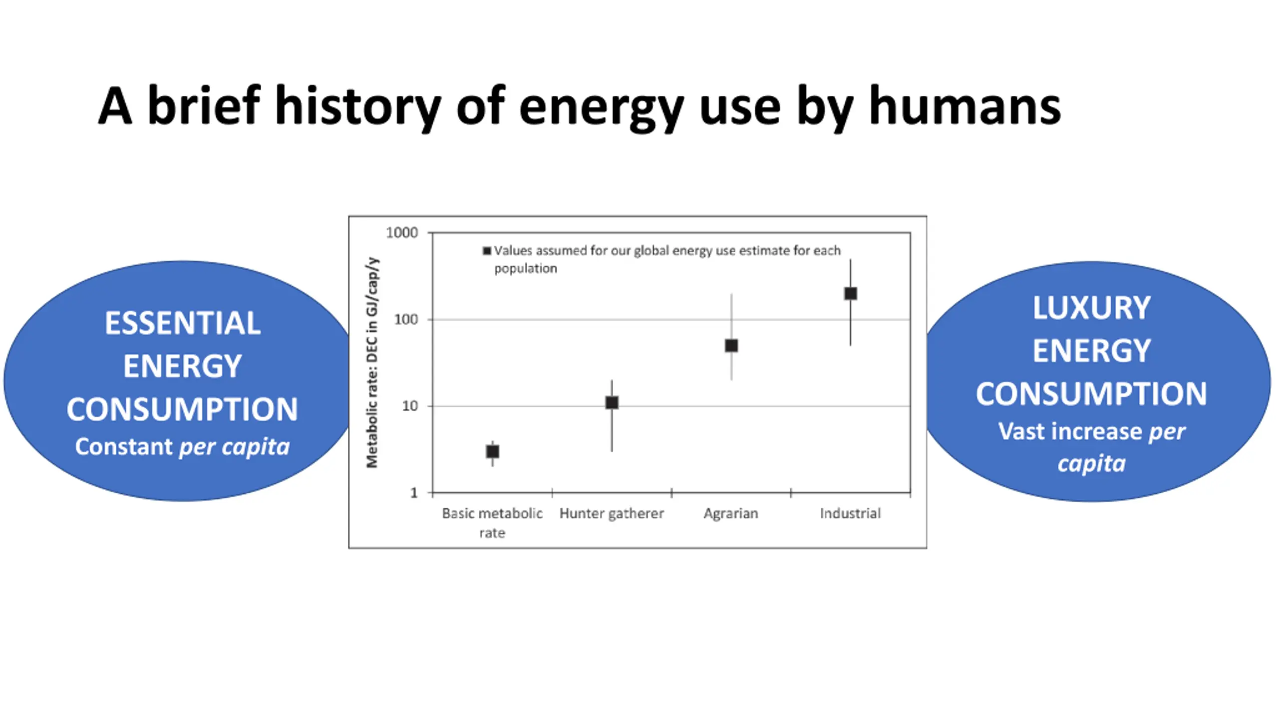 A brief history of energy use by humans LUXURY ENERGY CONSUMPTION Vast increase per capita ESSENTIAL ENERGY CONSUMPTION Constant per capita