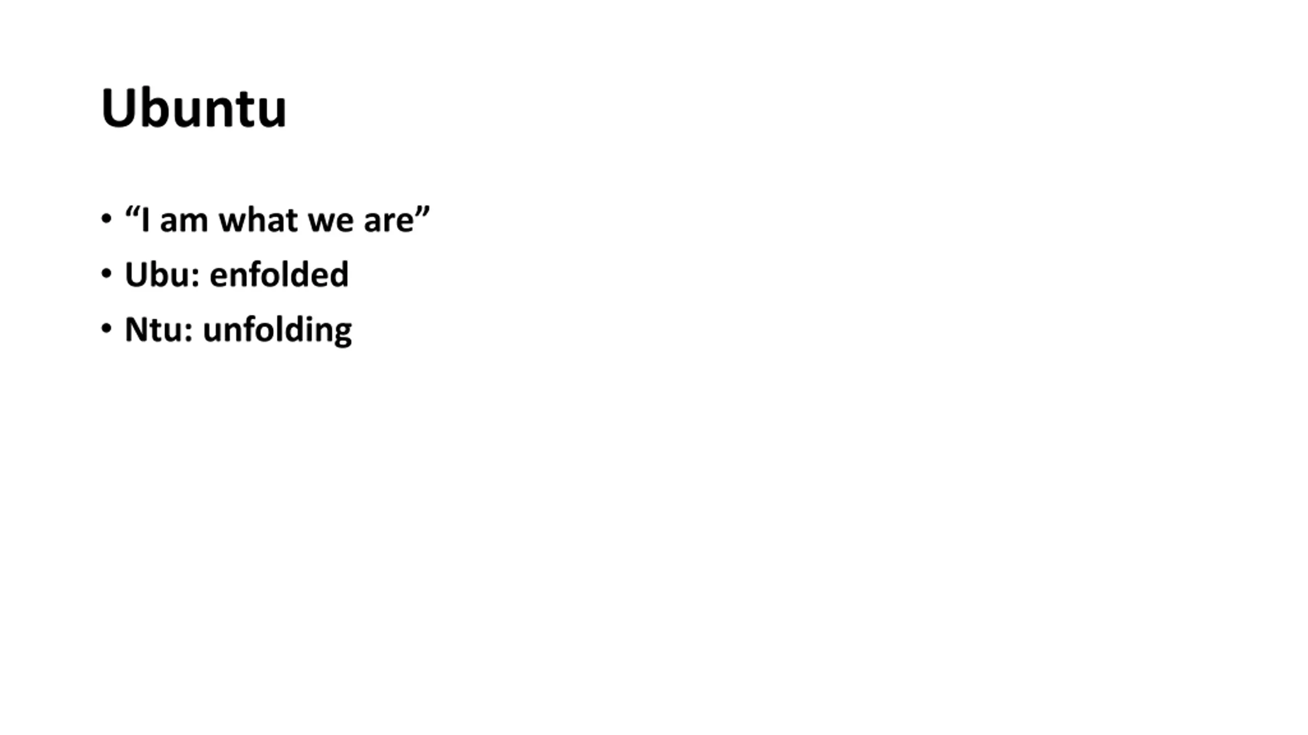 Ubuntu I am what we are Ubu: enfolded Ntu: unfolding