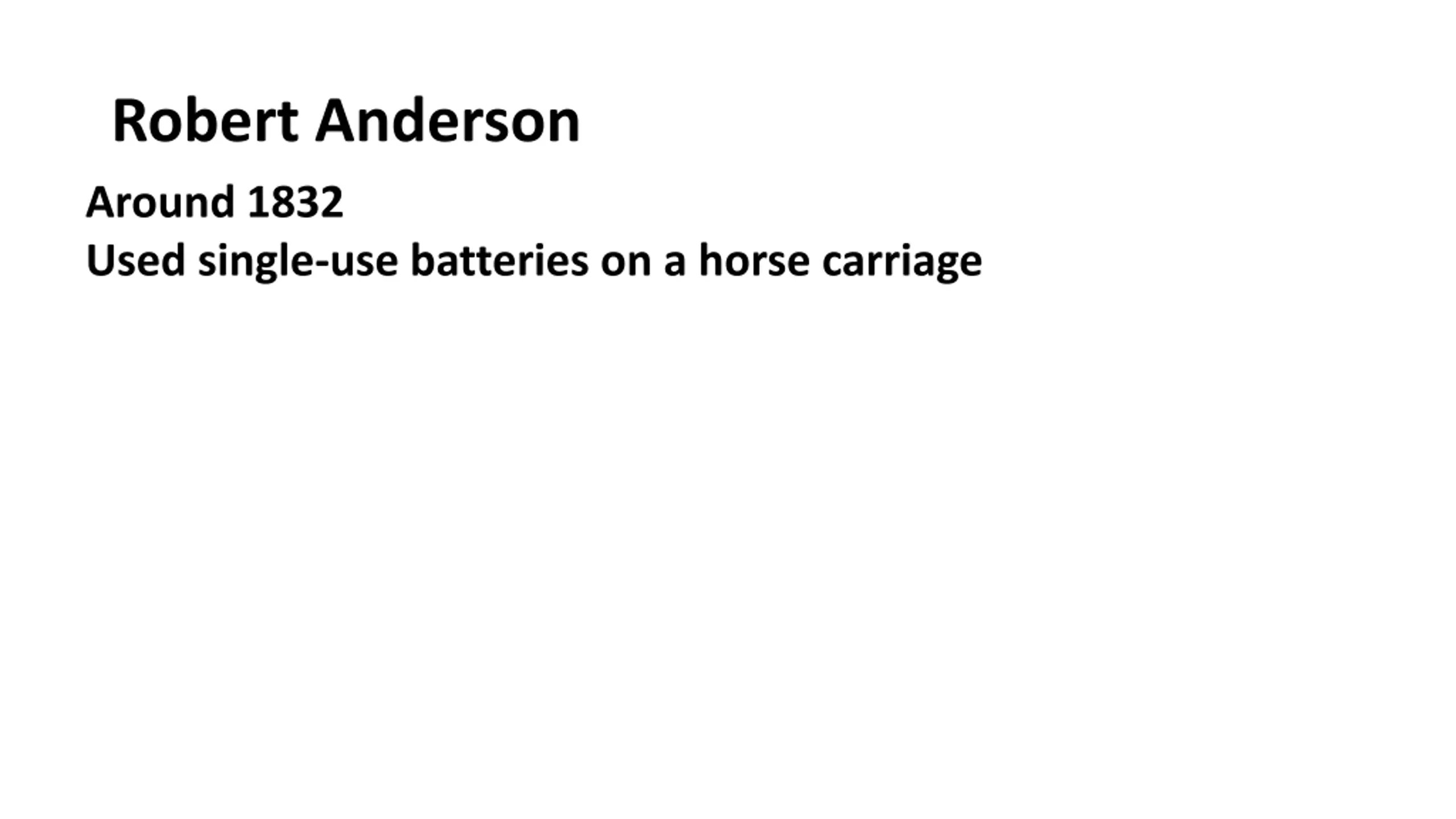 Robert Anderson Around 1832 Used single-use batteries on a horse carriage