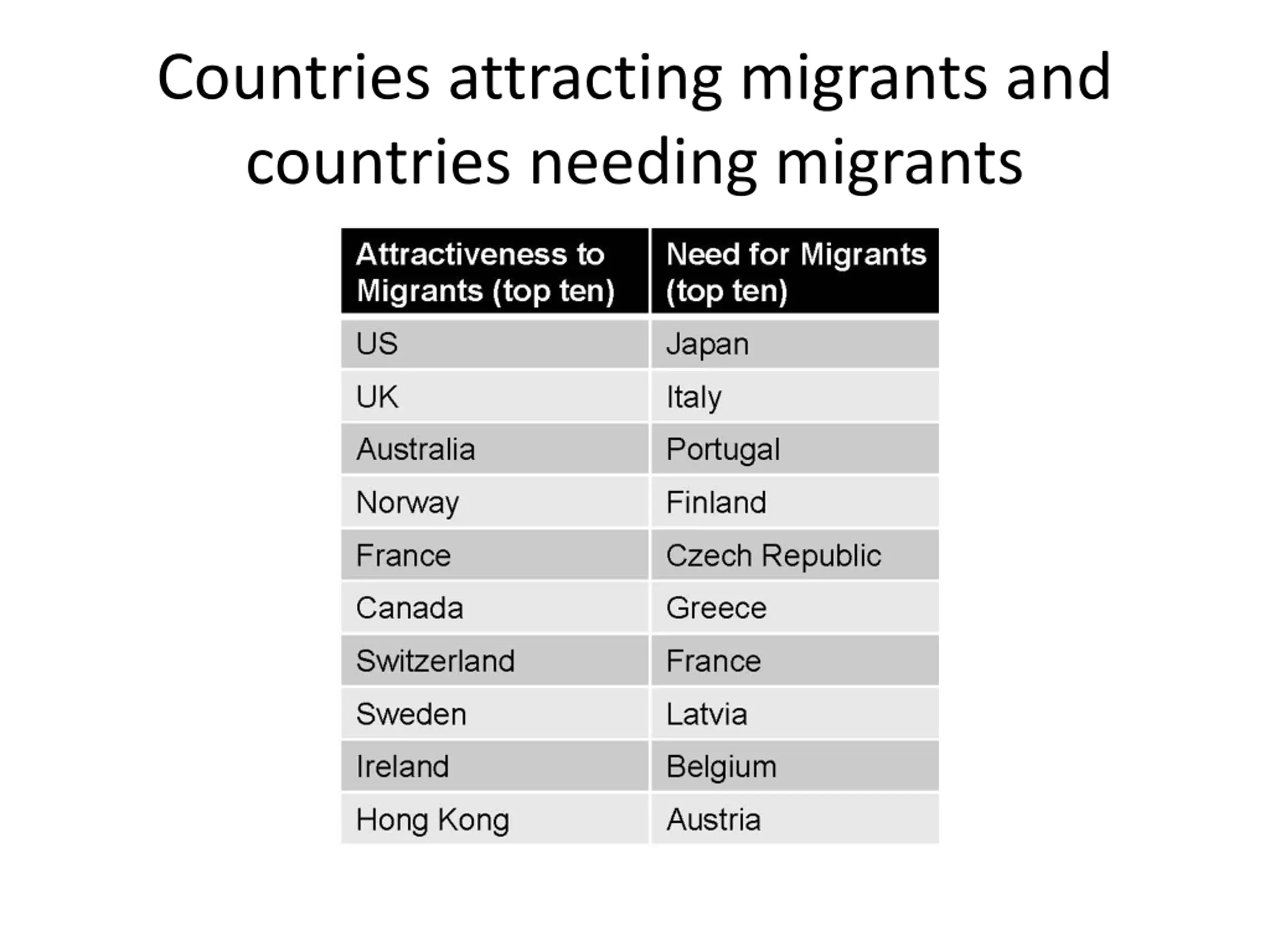Countries attracting migrants and countries needing migrants