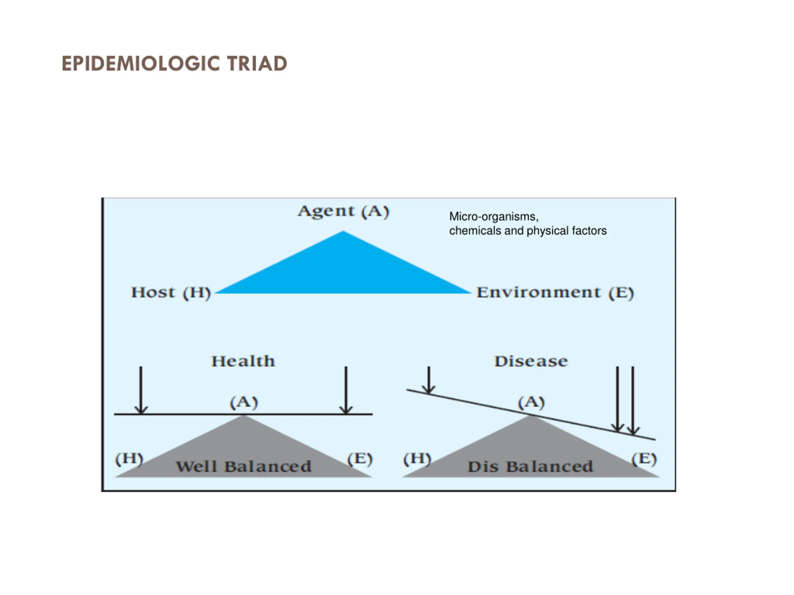 EPIDEMIOLOGIC TRIAD Micro-organisms, chemicals and physical factors