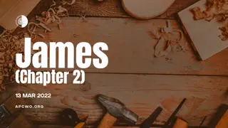 The Epistle of James Love Each Other James 2:8-13 NKJV 8 If you really fulfill the royal law according to the Scripture, "You shall love your neighbor as yourself," you do well; 9 but if you show partiality, you commit sin, and are convicted by the law as transgressors. 10 For whoever shall keep the whole law, and yet stumble in one point, he is guilty of all. 11 For He who said, "Do not commit adultery," also said, "Do not murder." Now if you do not commit adultery, but you do murder, you have become a transgressor of the law. 12 So speak and so do as those who will be judged by the law of liberty. 13 For judgment is without mercy to the one who has shown no mercy. Mercy triumphs over judgment. Apparently, those guilty of showing partiality were justifying their actions based upon the royal law (Lev. 19:18b; cf., Matt. 19:16-19; 22:36-40; Mark 12:28-31). However, their justification did not hold up, because they were not really / actually fulfilling the royal law toward the poor. The Mosaic Law also taught, you shall not show partiality, literally, regard faces. (Deut. 16:19; Lev. 19:13). (cf. Ex. 20:13,14; cf. Matt. 19:18-19) The context in which mercy is used here, carries the action of pity, or compassion. Compassion for the unfortunate will guard us from showing partiality. Cf., Matt. 25:41-45, Matt. 5:7