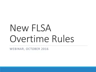 The Fair Labor Standards Act (FLSA) was signed into law in 1938 by President Franklin D. Roosevelt to address child labor, establish minimum wage, and regulate work hours. It sets standards for minimum wage, overtime pay, recordkeeping, and youth employment, impacting both private and government sectors. Nonexempt employees must be paid minimum wage and overtime rates, and recent changes aim to increase the minimum wage for workers. Compliance with FLSA is crucial for all employees to avoid negative consequences.