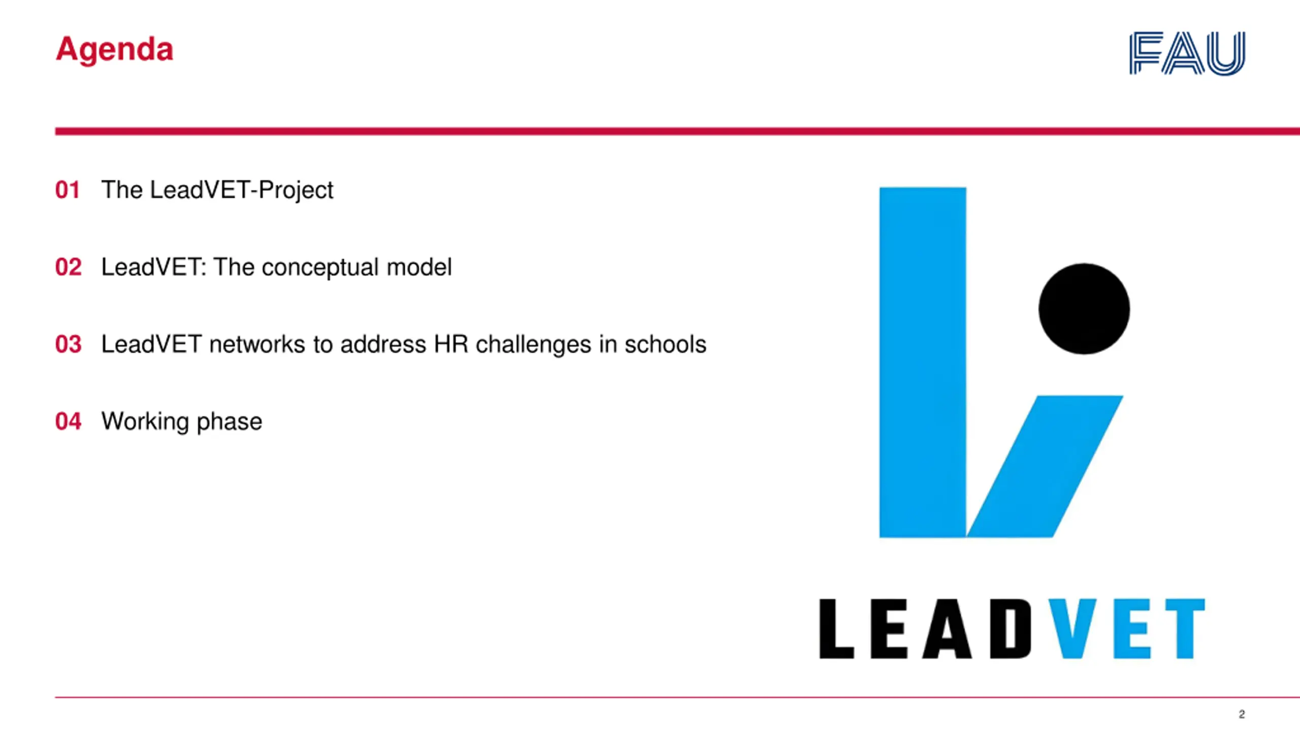 Agenda The LeadVET-Project 01 LeadVET: The conceptual model 02 LeadVET networks to address HR challenges in schools 03 Working phase 04 2