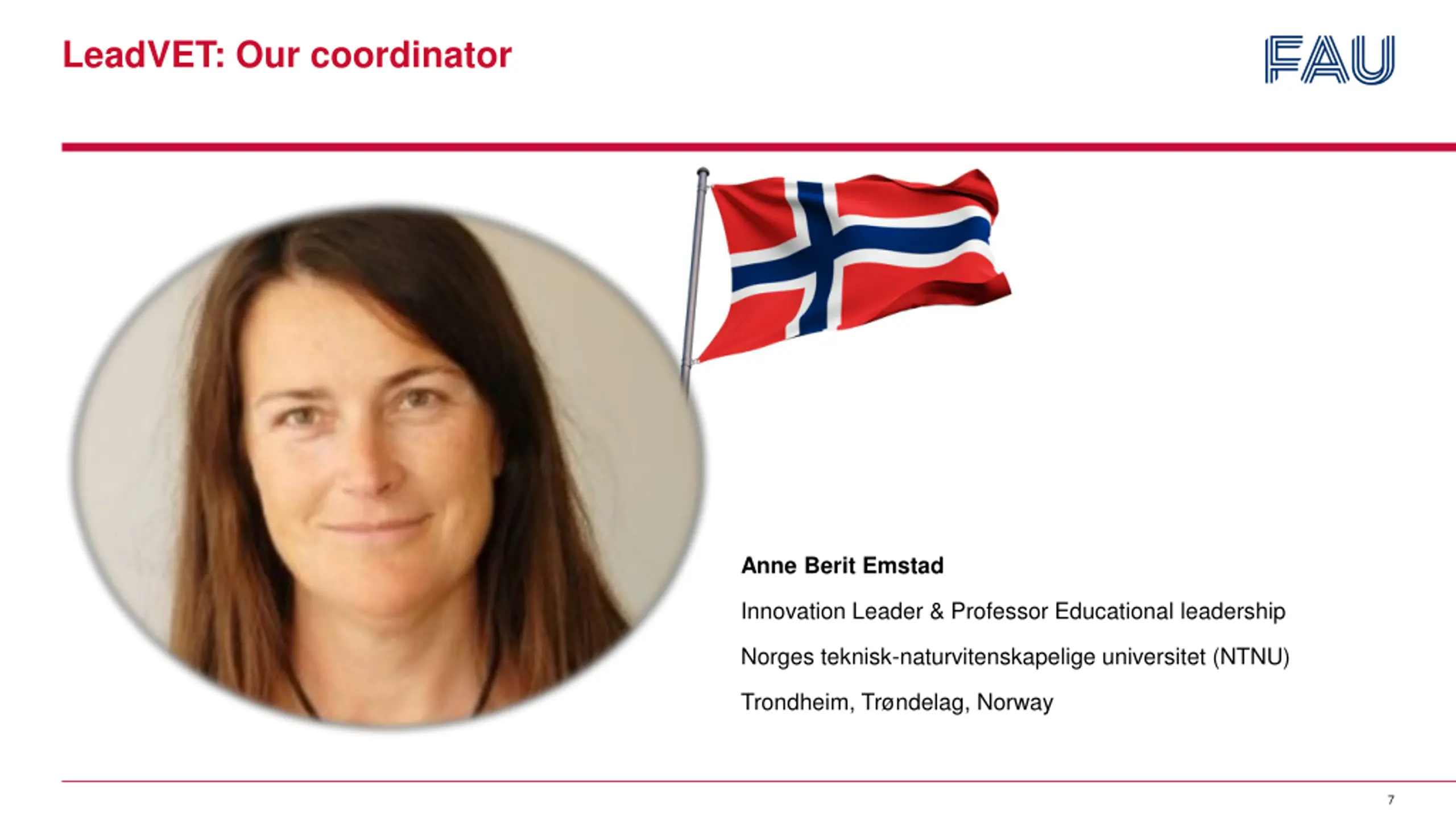 LeadVET: Our coordinator Anne Berit Emstad Innovation Leader & Professor Educational leadership Norges teknisk-naturvitenskapelige universitet (NTNU) Trondheim, Tr ndelag, Norway 7
