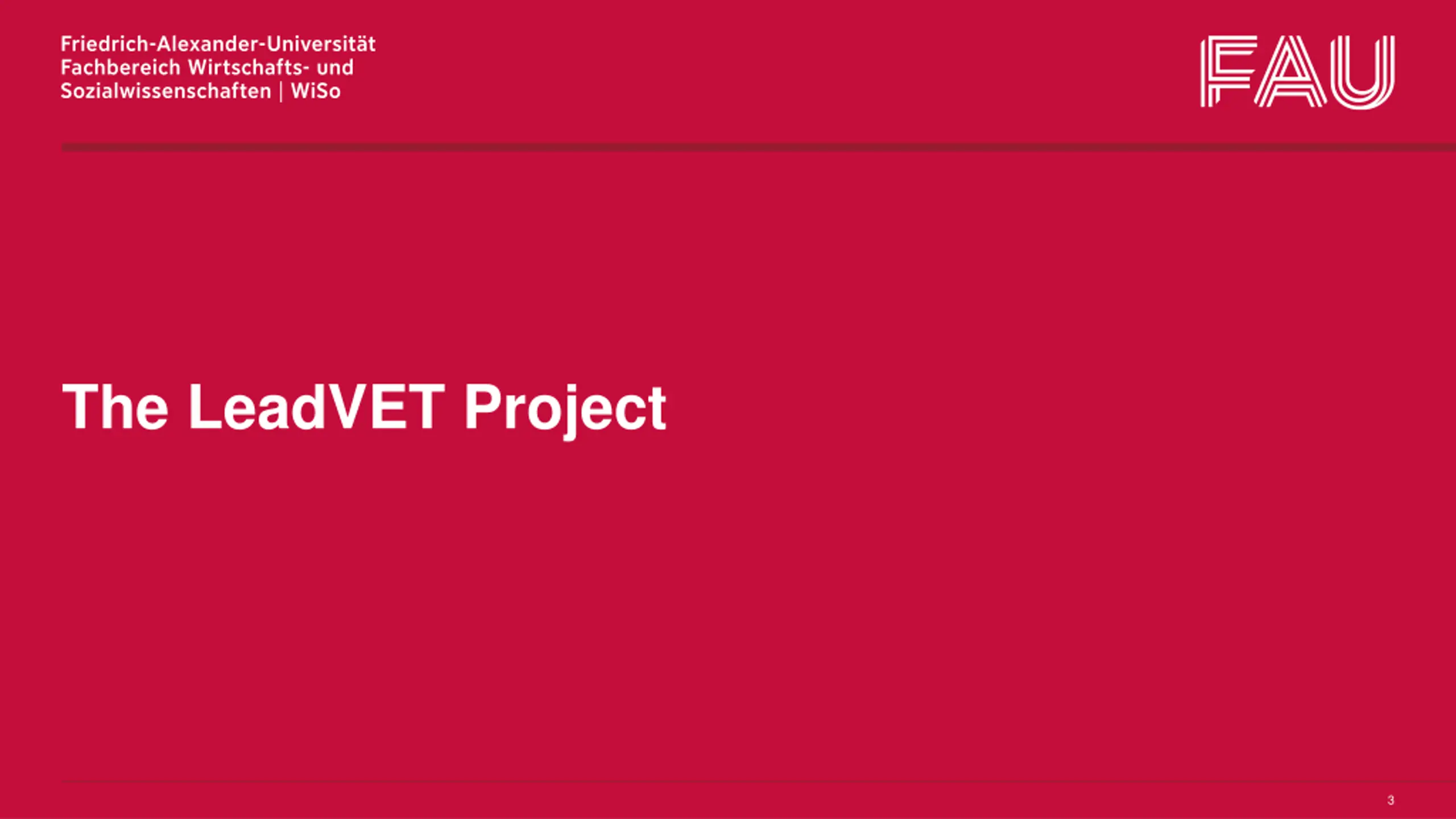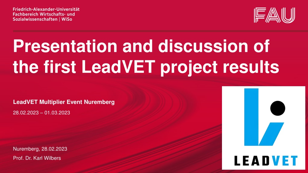 Presentation and discussion of the first LeadVET project results LeadVET Multiplier Event Nuremberg 28.02.2023 01.03.2023 Nuremberg, 28.02.2023 Prof. Dr. Karl Wilbers