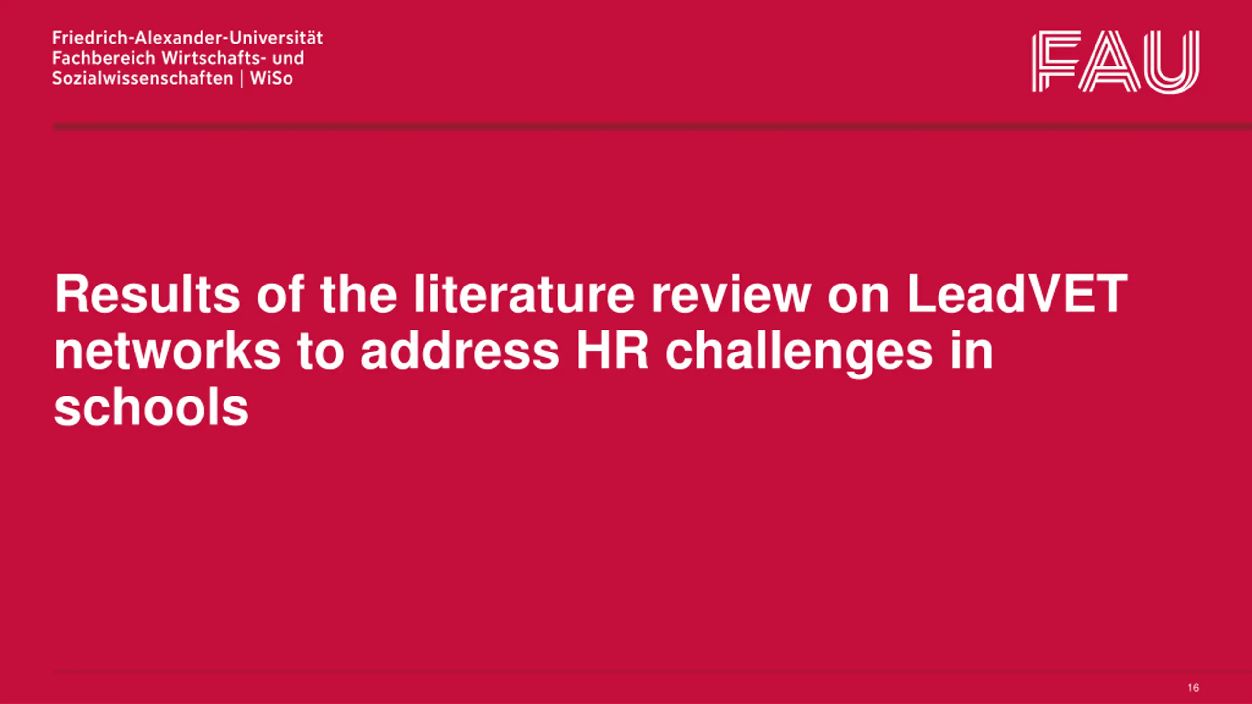 Results of the literature review on LeadVET networks to address HR challenges in schools 16