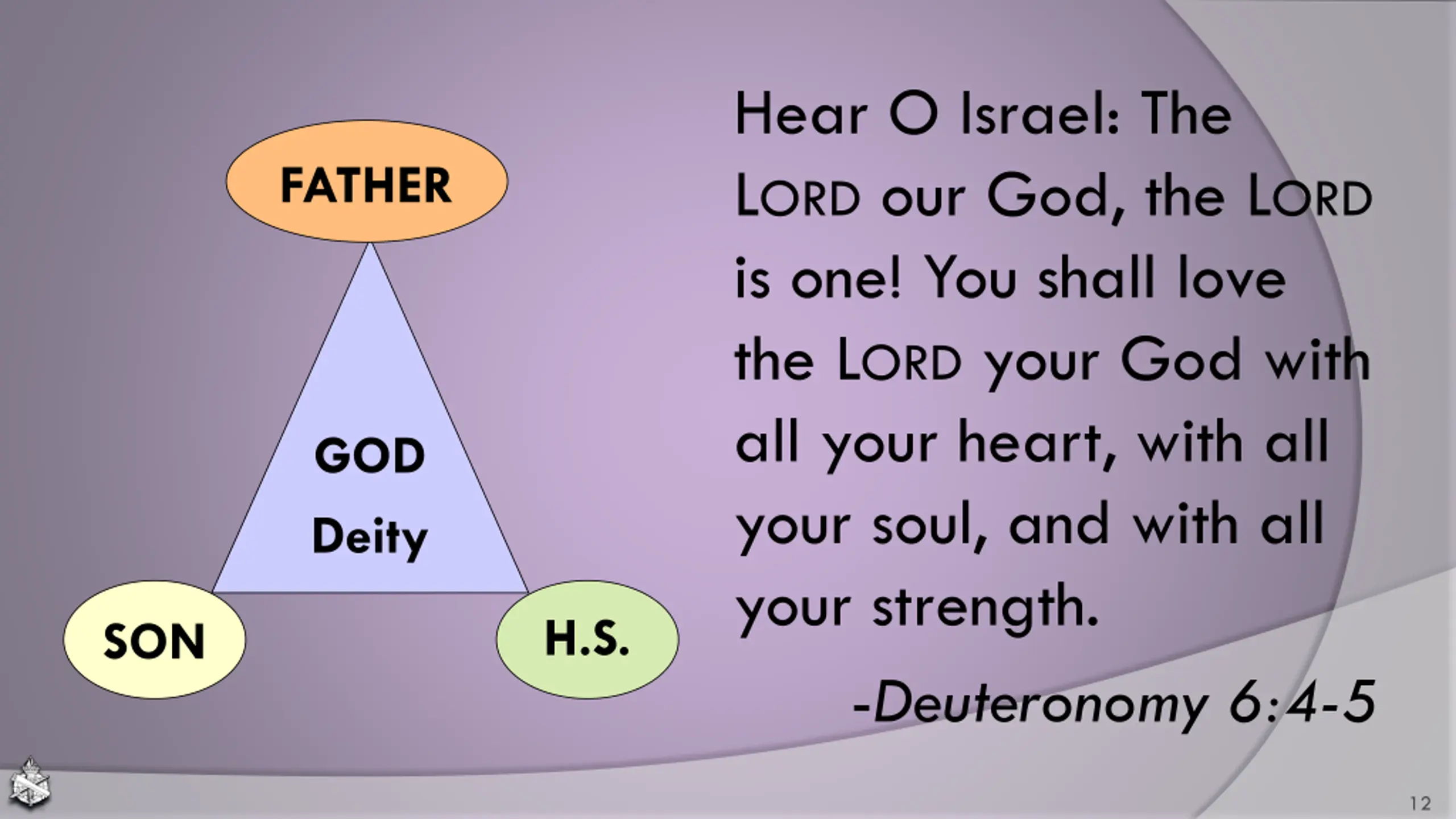 Hear O Israel: The LORD our God, the LORD is one! You shall love the LORD your God with all your heart, with all your soul, and with all your strength. -Deuteronomy 6:4-5 FATHER GOD Deity H.S. SON 12