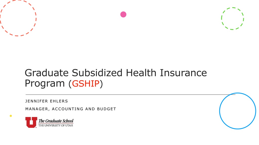 Graduate Subsidized Health Insurance Program (GSHIP) JENNIFER EHLERS MANAGER, ACCOUNTING AND BUDGET