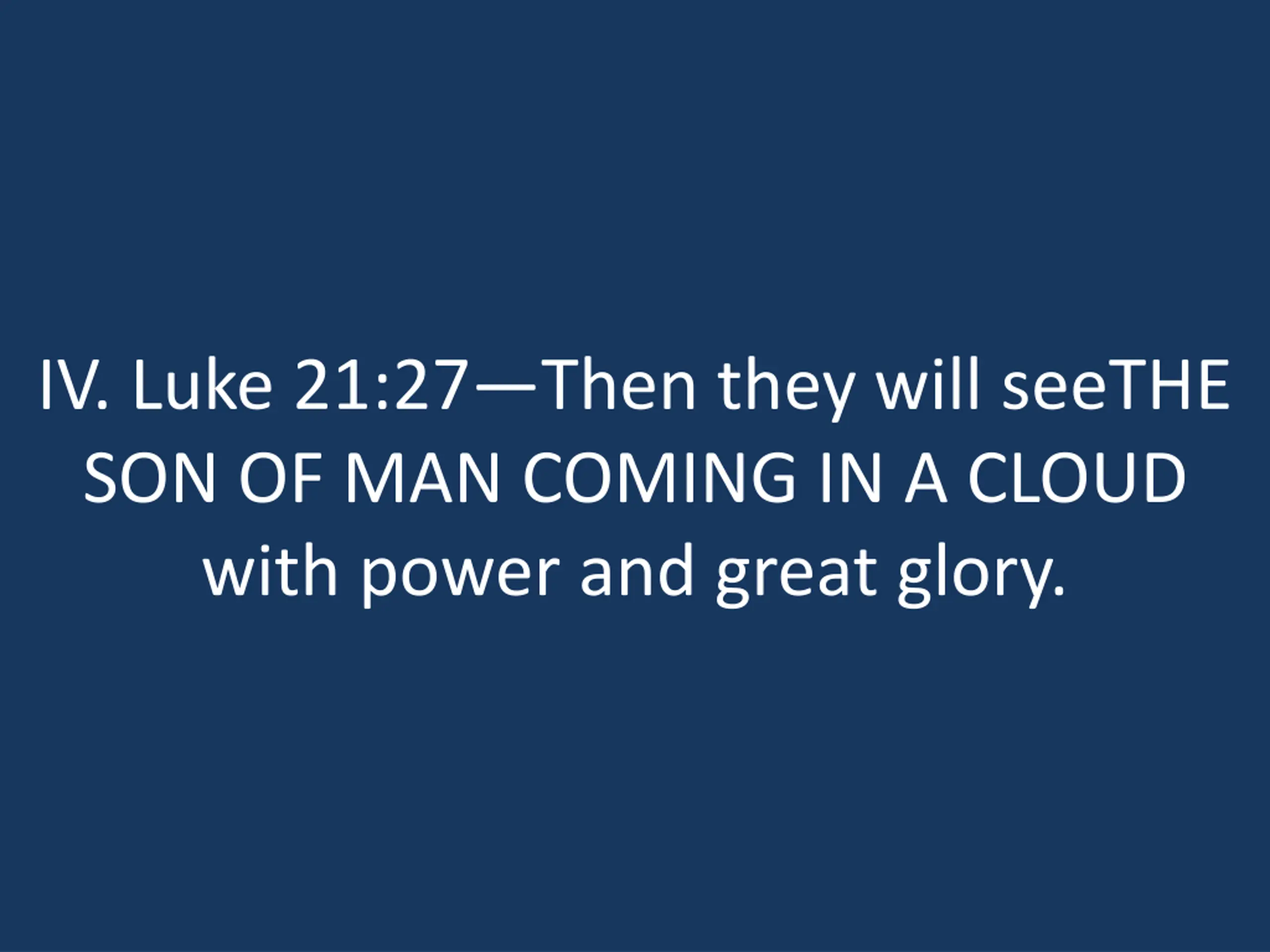 IV. Luke 21:27Then they will seeTHE SON OF MAN COMING IN A CLOUD with power and great glory.