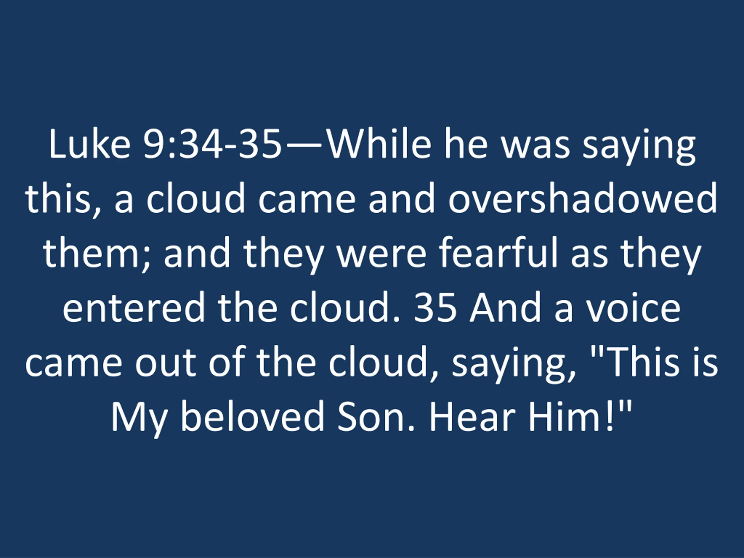 Luke 9:34-35While he was saying this, a cloud came and overshadowed them; and they were fearful as they entered the cloud. 35 And a voice came out of the cloud, saying, "This is My beloved Son. Hear Him!"