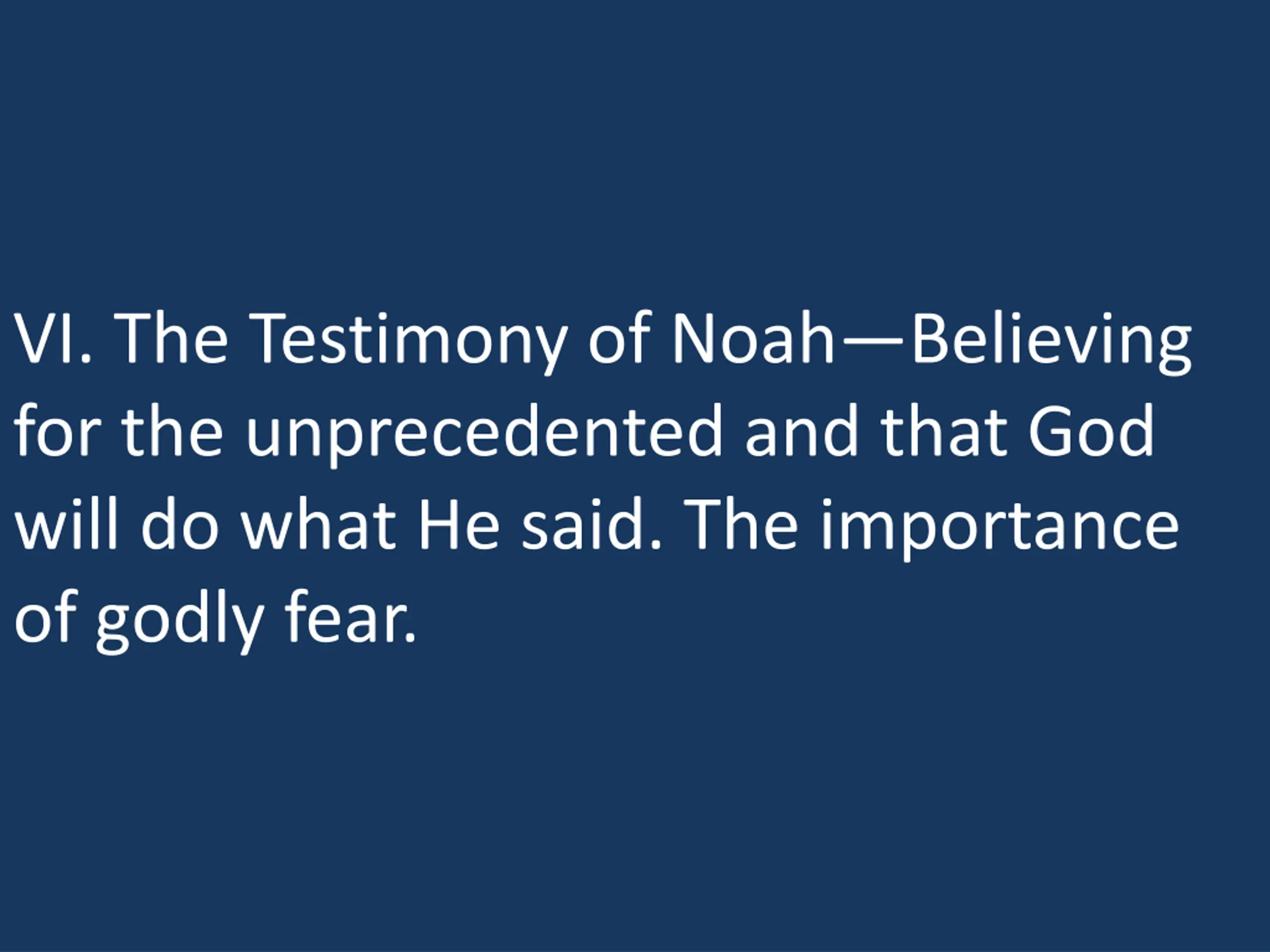 VI. The Testimony of NoahBelieving for the unprecedented and that God will do what He said. The importance of godly fear.