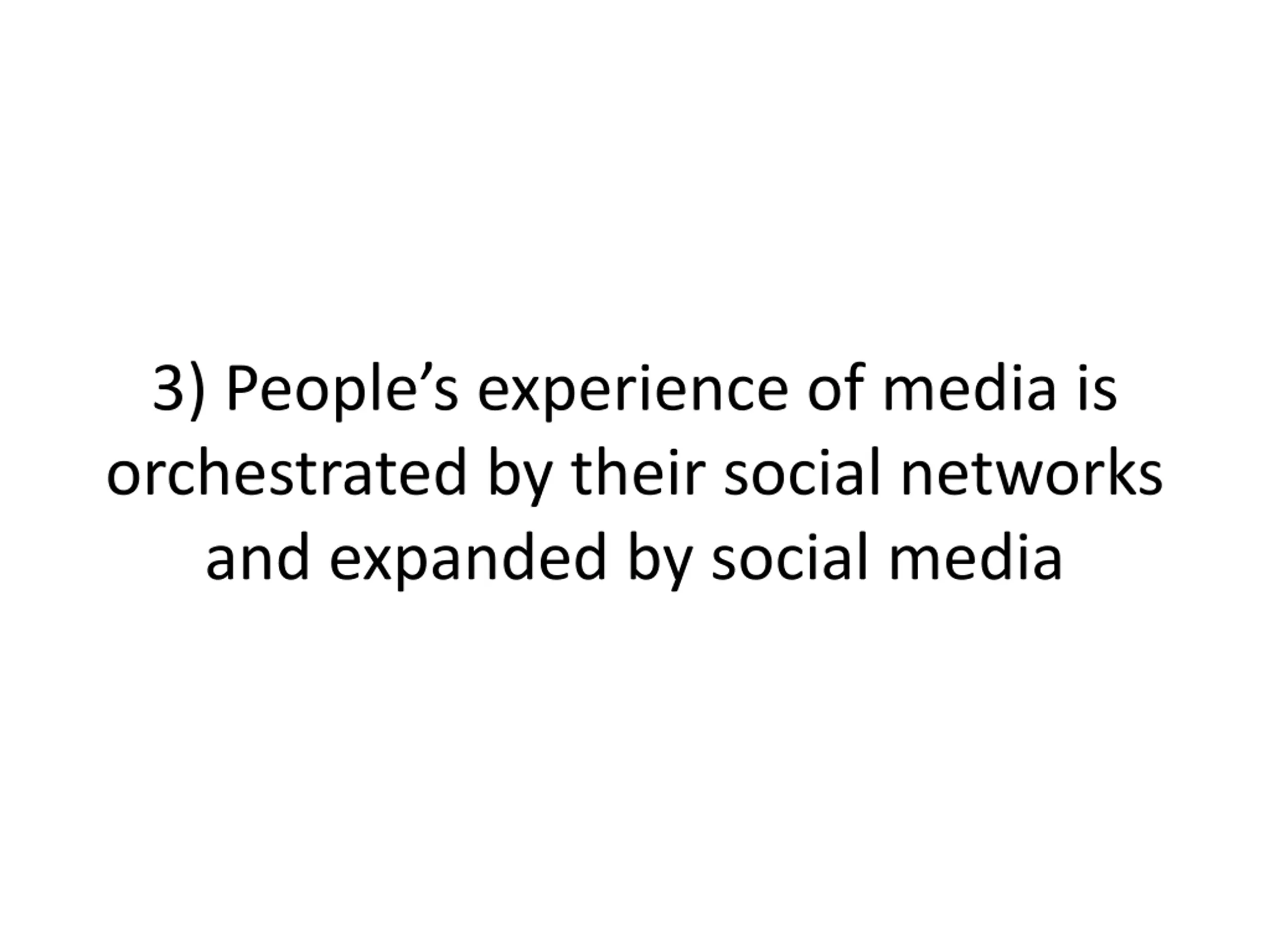 3) Peoples experience of media is orchestrated by their social networks and expanded by social media