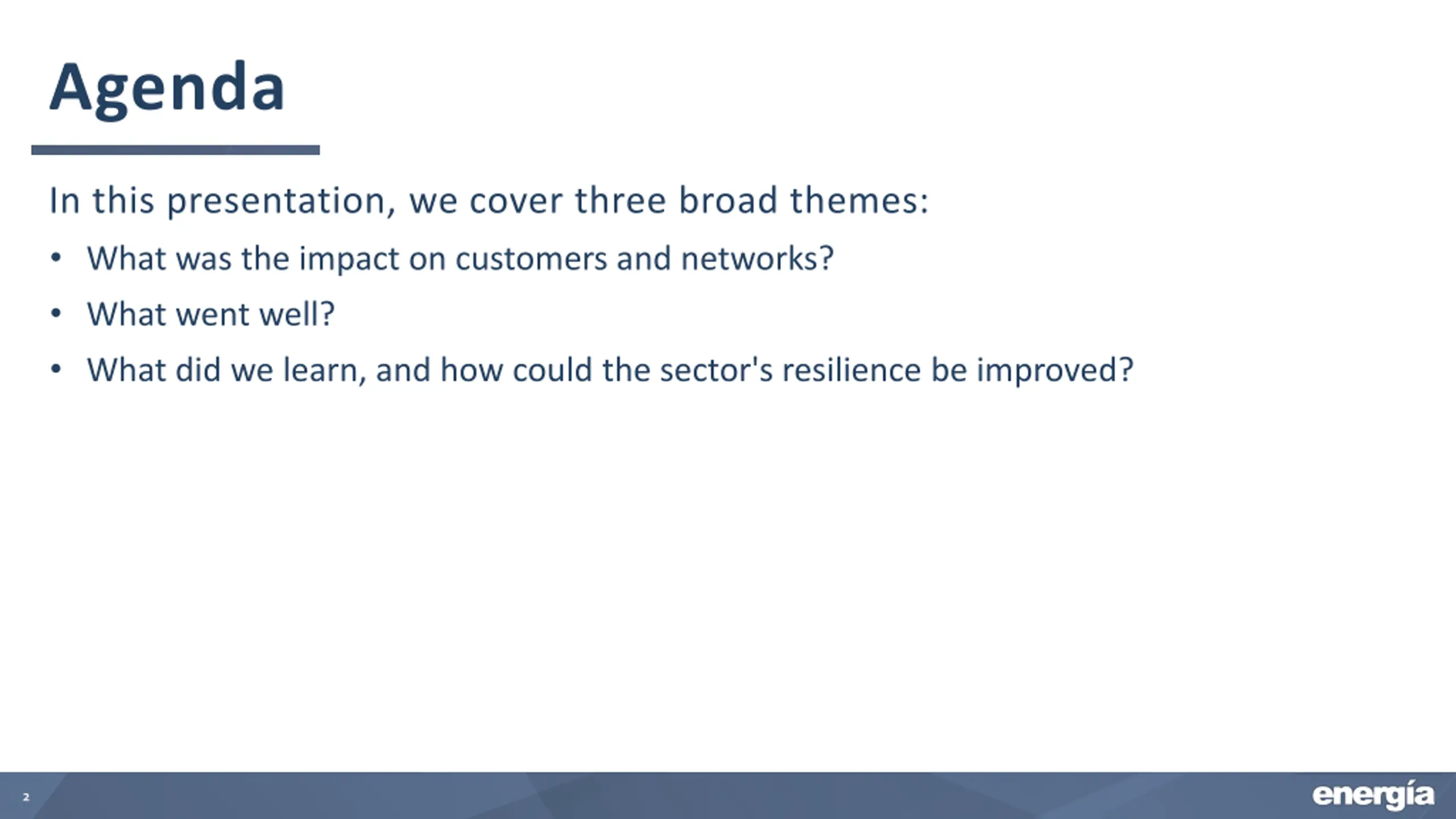 Agenda In this presentation, we cover three broad themes: What was the impact on customers and networks? What went well? What did we learn, and how could the sector's resilience be improved? 2