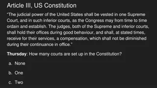 JUDICIARY ACT OF 1789- STRUCTURE The original structure was left vague by the founders (by doing this, they avoided opposition in the ratification process). - Article 3: The judicial power of the United States shall be vested in one Supreme Court, and in such inferior courts as the Congress may from time to time ordain and establish. Judiciary Act of 1789- Proposes the three-tiered system: 1) District Courts 2) Circuit Court of Appeals 3) Supreme Court.