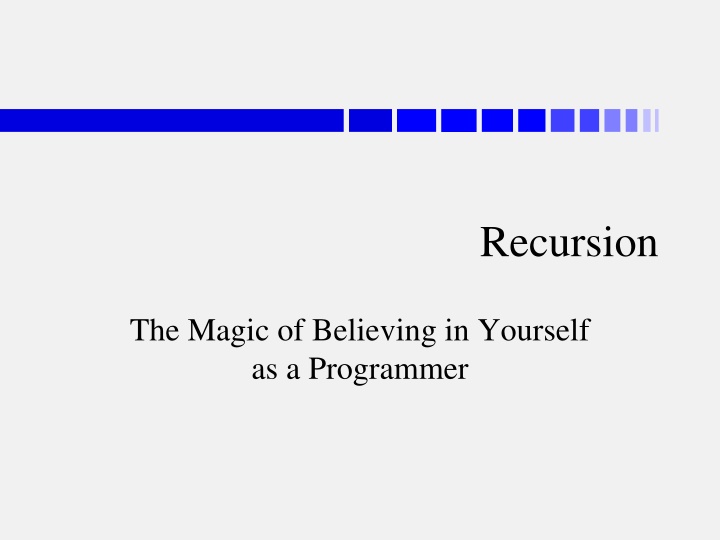 Discover the power of recursion in programming through insightful insights and examples. Explore recursive algorithms, methods, and the significance of believing in yourself as a programmer. Understand the crucial roles of arguments and parameters in methods, and delve into the intricacies of how methods perform their jobs. Unveil the beauty of fractal images and embark on a journey to master the art of recursive thinking.