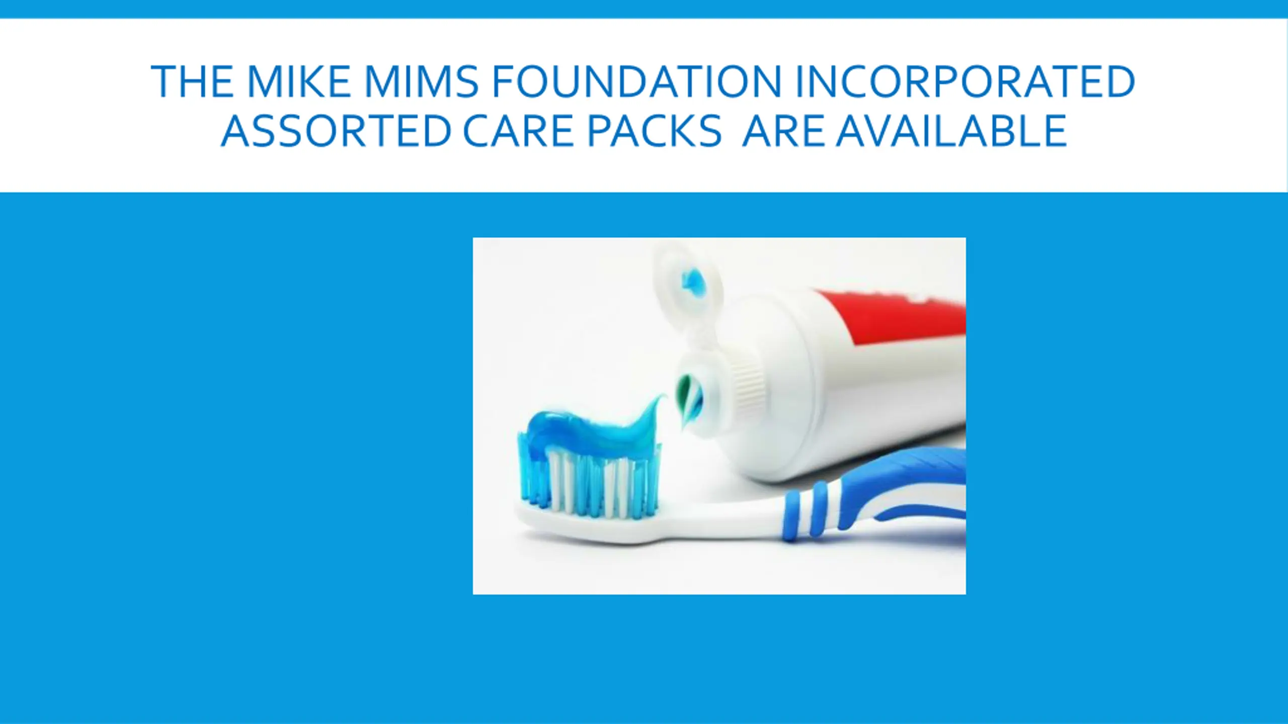 THE MIKE MIMS FOUNDATION INCORPORATED ASSORTED CARE PACKS ARE AVAILABLE