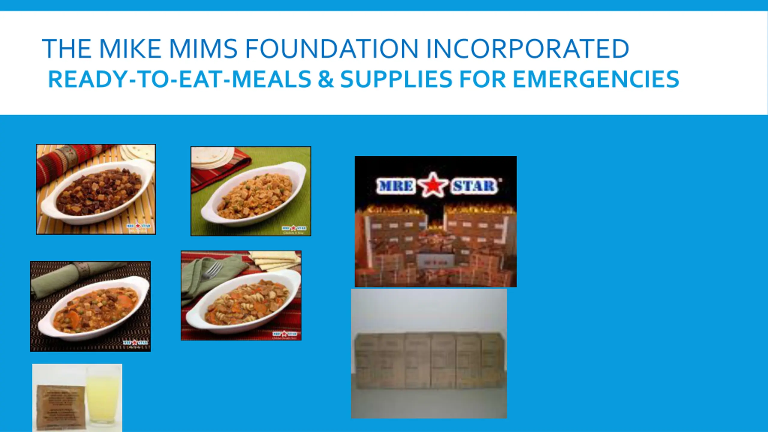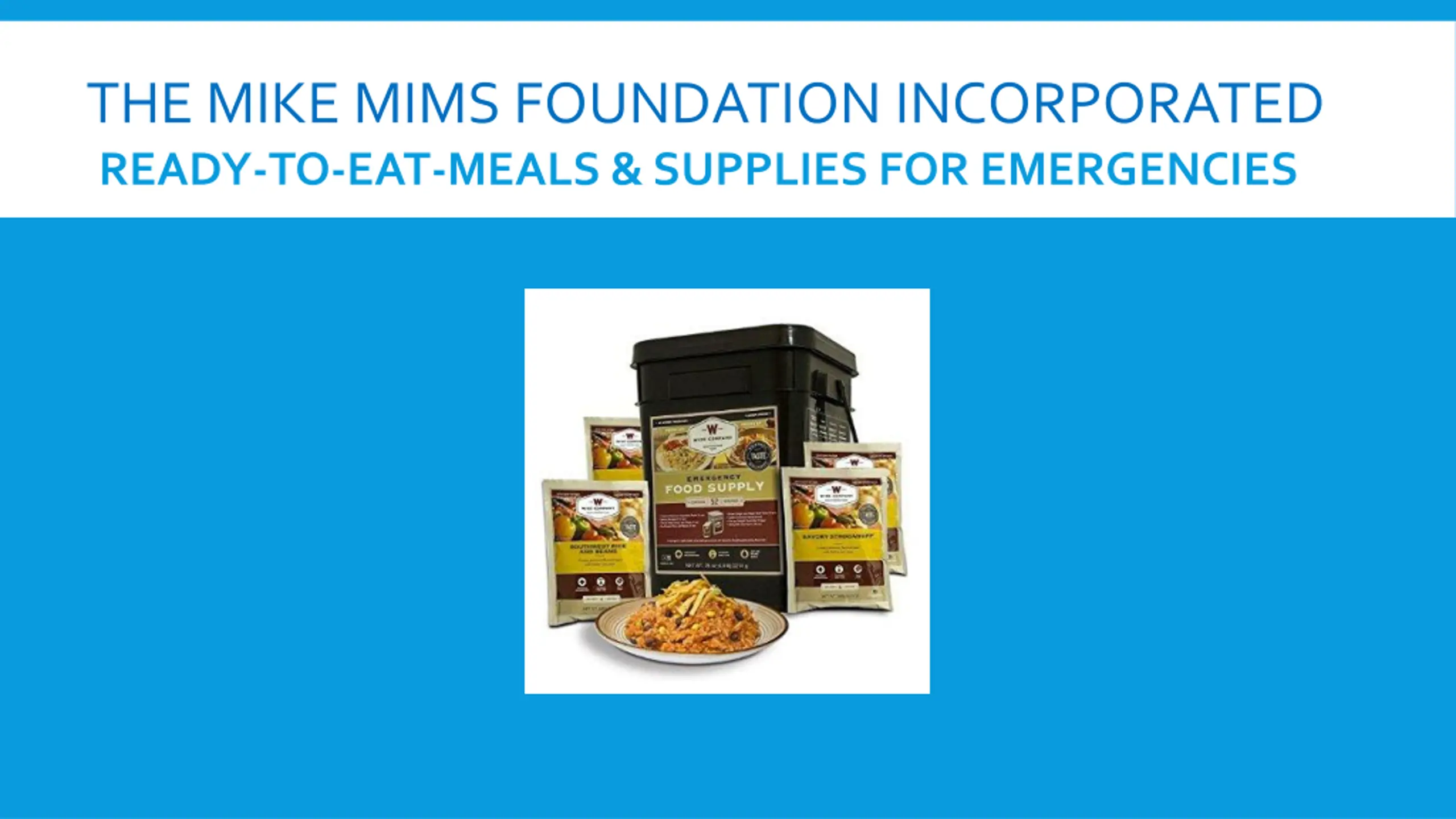 THE MIKE MIMS FOUNDATION INCORPORATED READY-TO-EAT-MEALS & SUPPLIES FOR EMERGENCIES