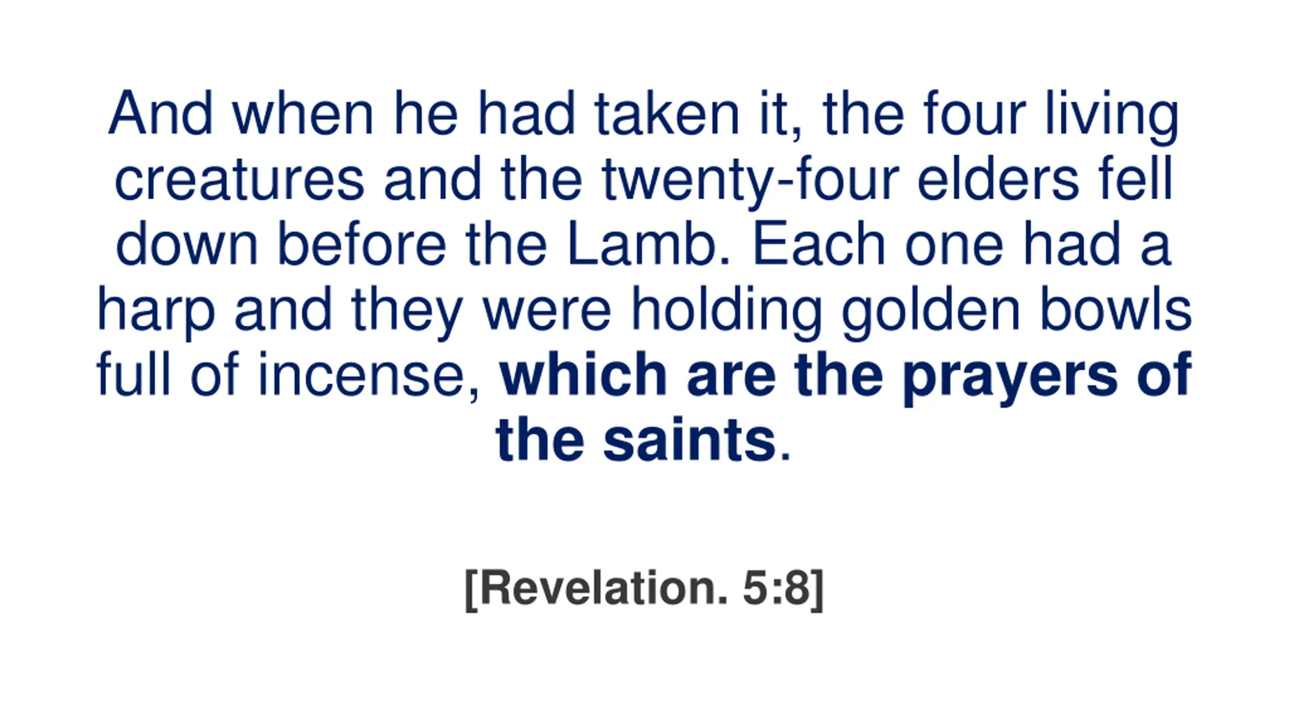 And when he had taken it, the four living creatures and the twenty-four elders fell down before the Lamb. Each one had a harp and they were holding golden bowls full of incense, which are the prayers of the saints. [Revelation. 5:8]